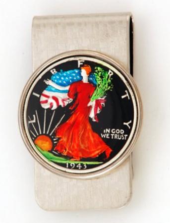 Hand Painted Walking Liberty Half Dollar (Obverse) Money Clip
