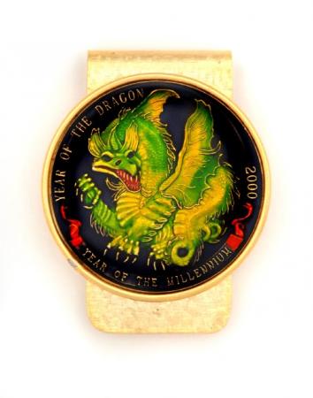 Hand Painted Year of Dragon Medallion (Green) Money Clip