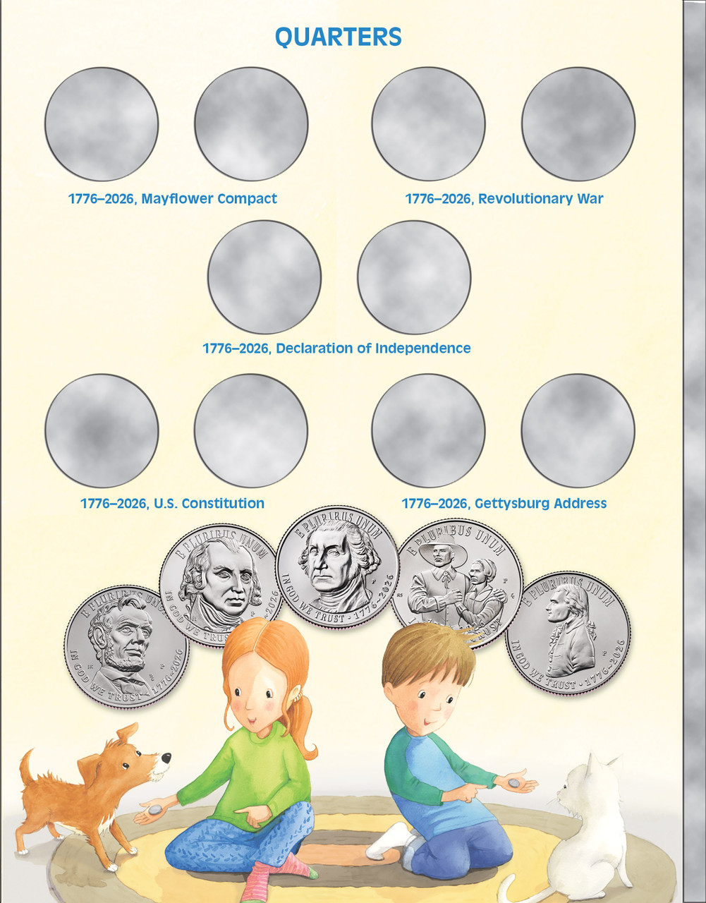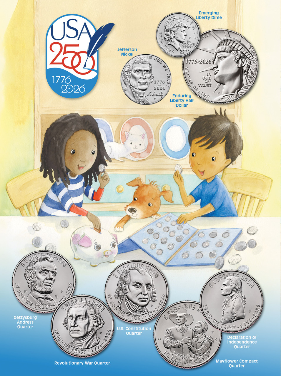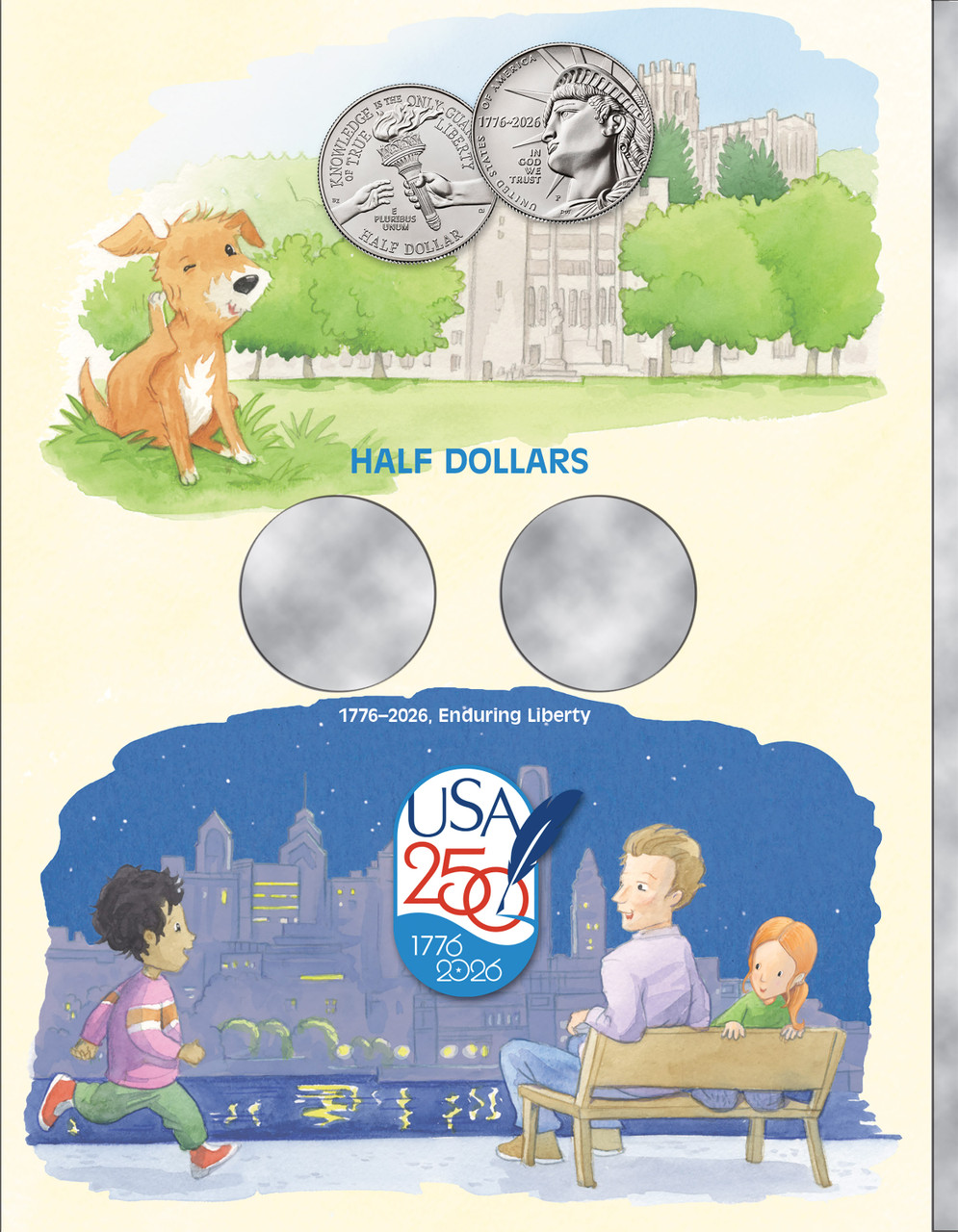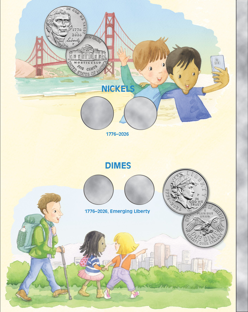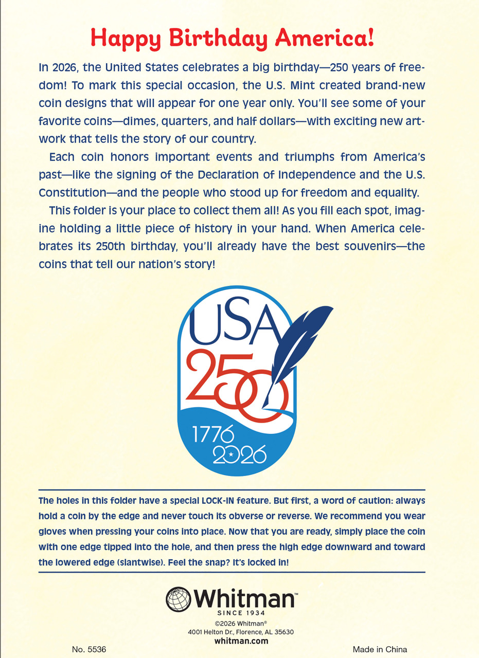 - This folder includes 3 pages with a total of 16 openings designed for circulation-strike coins from either the Philadelphia or Denver mints for 2026 to celebrate 250th Anniversary of the United States (Semiquincentennial)