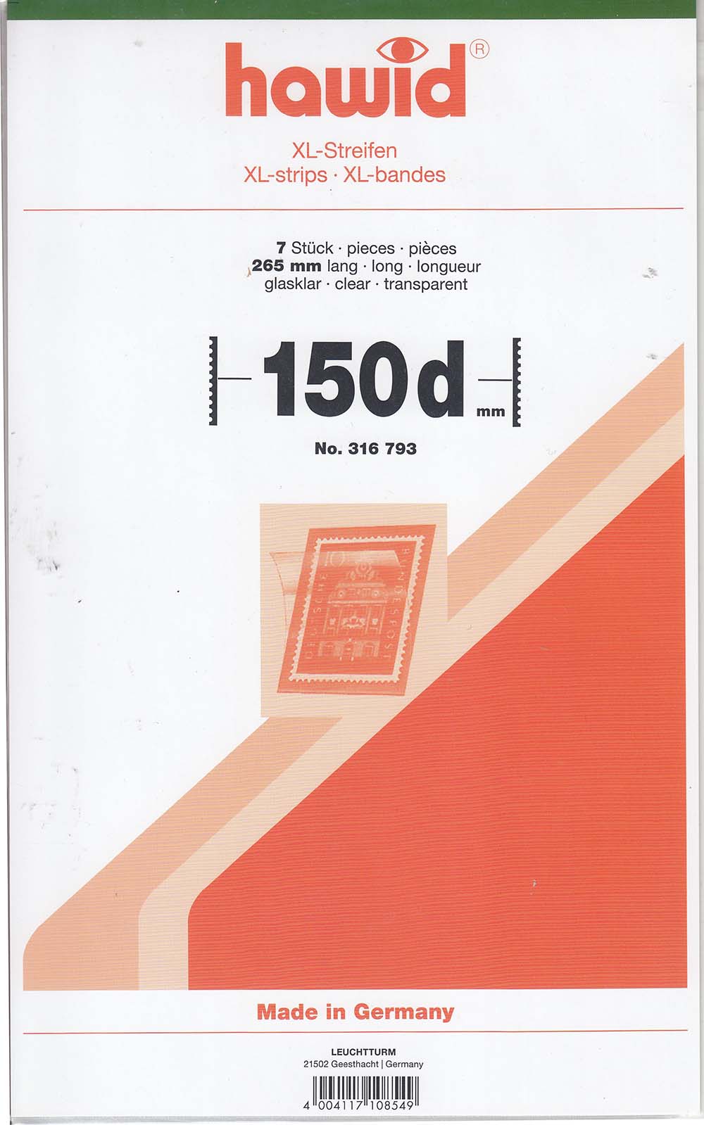 Philatelists around the world protect their valuable stamps with Hawid Stamp Mounts. Hawid Stamp Mounts provide lasting protection and optimum flexibility for configuration of the one’s stamp collection. The thin and extremely stable Hawid Stamp Mount consists of a rubberized back and a clear covering film. The rubberized backs are available in either black or clear to provide an aesthetic frame for your stamps’ perforations and designs. The clear cover holds the stamp in place with spring action while a curvature allows for breathing. The two pieces are precisely joined at the bottom for exact positioning of the stamp (mounts 70mm or more in height are also joined at the top). The rubberized backs on Hawid Stamp Mounts have an adhesive coating that, when slightly moistened, allows for the securing of the stamp mount in place. These mount strips are 265mm long and can be cut to the desired length. Hawid Stamp Mounts are made from archival, plasticizer-free polystyrene.