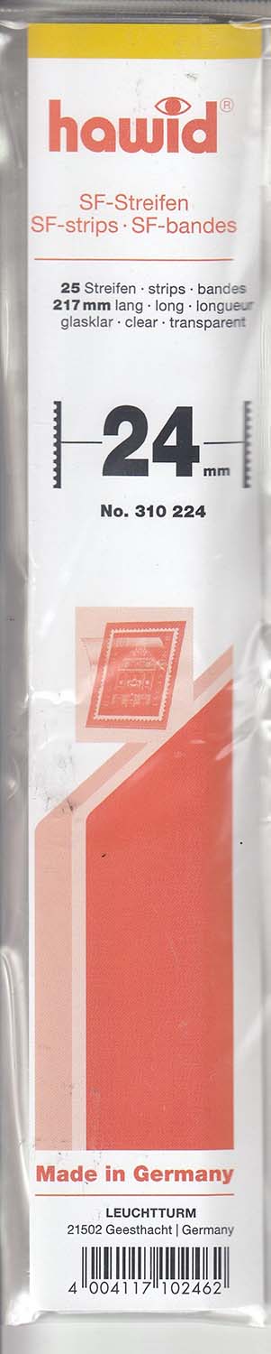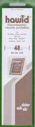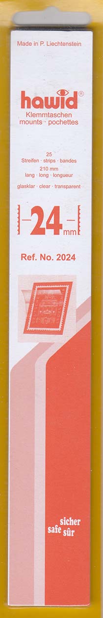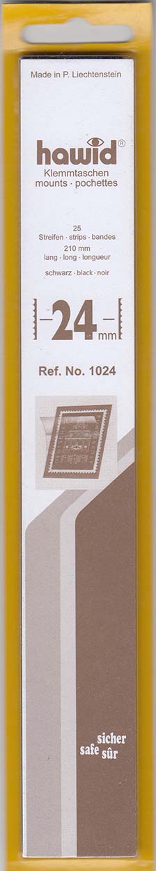 Philatelists around the world protect their valuable stamps with Hawid Stamp Mounts. Hawid Stamp Mounts provide lasting protection and optimum flexibility for configuration of the one’s stamp collection. The thin and extremely stable Hawid Stamp Mount consists of a rubberized back and a clear covering film. The rubberized backs are available in either black or clear to provide an aesthetic frame for your stamps’ perforations and designs. The clear cover holds the stamp in place with spring action while a curvature allows for breathing. The two pieces are precisely joined at the bottom for exact positioning of the stamp (mounts 70mm or more in height are also joined at the top). The rubberized backs on Hawid Stamp Mounts have an adhesive coating that, when slightly moistened, allows for the securing of the stamp mount in place. These mount strips are 210mm long and can be cut to the desired length. Hawid Stamp Mounts are made from archival, plasticizer-free polystyrene.