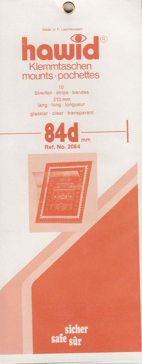 Philatelists around the world protect their valuable stamps with Hawid Stamp Mounts. Hawid Stamp Mounts provide lasting protection and optimum flexibility for configuration of the one’s stamp collection. The thin and extremely stable Hawid Stamp Mount consists of a rubberized back and a clear covering film. The rubberized backs are available in either black or clear to provide an aesthetic frame for your stamps’ perforations and designs. The clear cover holds the stamp in place with spring action while a curvature allows for breathing. The two pieces are precisely joined at the bottom for exact positioning of the stamp (mounts 70mm or more in height are also joined at the top). The rubberized backs on Hawid Stamp Mounts have an adhesive coating that, when slightly moistened, allows for the securing of the stamp mount in place. These mount strips are 210mm long and can be cut to the desired length. Hawid Stamp Mounts are made from archival, plasticizer-free polystyrene.
