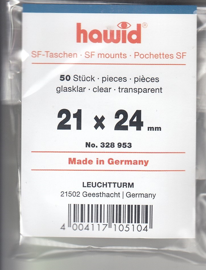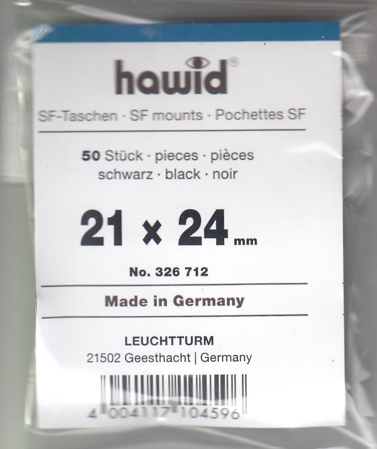 Philatelists around the world protect their valuable stamps with Hawid Stamp Mounts. Hawid Stamp Mounts provide lasting protection and optimum flexibility for configuration of the one’s stamp collection. The thin and extremely stable Hawid Stamp Mount consists of a rubberized back and a clear covering film. The rubberized backs are available in either black or clear to provide an aesthetic frame for your stamps’ perforations and designs. The clear cover holds the stamp in place with spring action while a curvature allows for breathing. The two pieces are precisely joined at the bottom for exact positioning of the stamp (mounts 70mm or more in height are also joined at the top). The rubberized backs on Hawid Stamp Mounts have an adhesive coating that, when slightly moistened, allows for the securing of the stamp mount in place. Hawid Stamp Mounts are made from archival, plasticizer-free polystyrene.