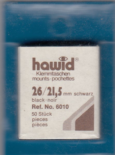 Philatelists around the world protect their valuable stamps with Hawid Stamp Mounts. Hawid Stamp Mounts provide lasting protection and optimum flexibility for configuration of the one’s stamp collection. The thin and extremely stable Hawid Stamp Mount consists of a rubberized back and a clear covering film. The rubberized backs are available in either black or clear to provide an aesthetic frame for your stamps’ perforations and designs. The clear cover holds the stamp in place with spring action while a curvature allows for breathing. The two pieces are precisely joined at the bottom for exact positioning of the stamp (mounts 70mm or more in height are also joined at the top). The rubberized backs on Hawid Stamp Mounts have an adhesive coating that, when slightly moistened, allows for the securing of the stamp mount in place. Hawid Stamp Mounts are made from archival, plasticizer-free polystyrene.