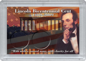 This attractive commemorative coin case holds two of the new 2009 cents: one hole is to show the obverse (“heads” side), and the other shows your choice of the four reverse designs. Created for display and for long-term storage and made of durable materials that are safe for the coins. Holds two cents.