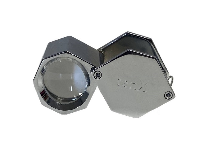Large Hexagon Triplet Loupe, 21.5mm, 10X -- Silver