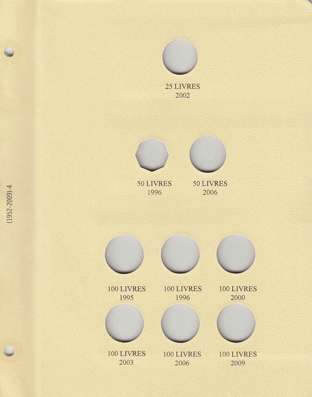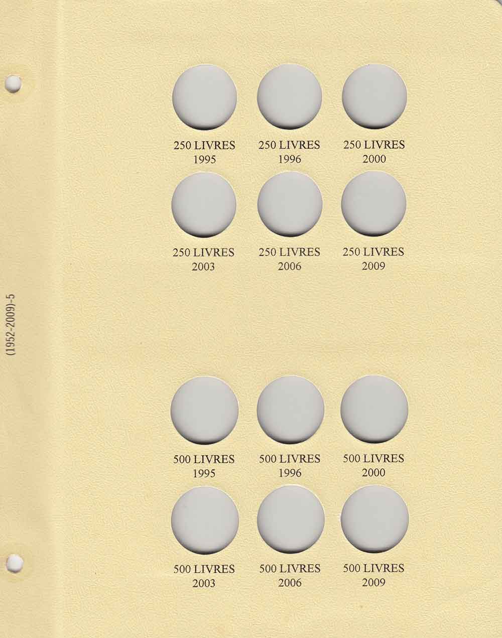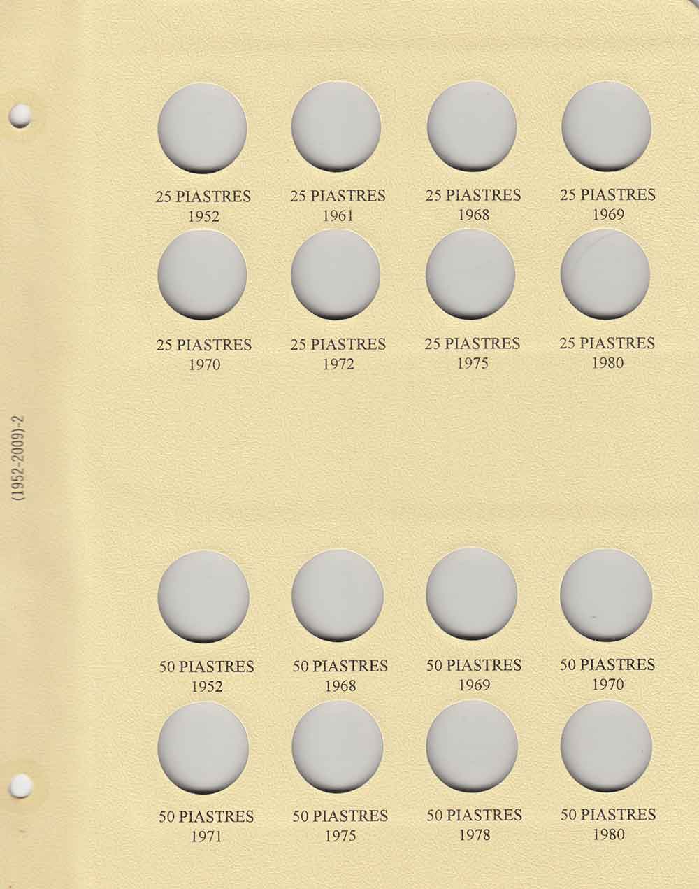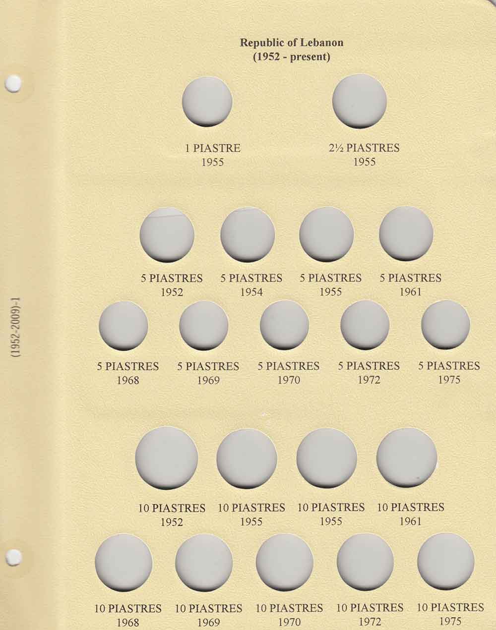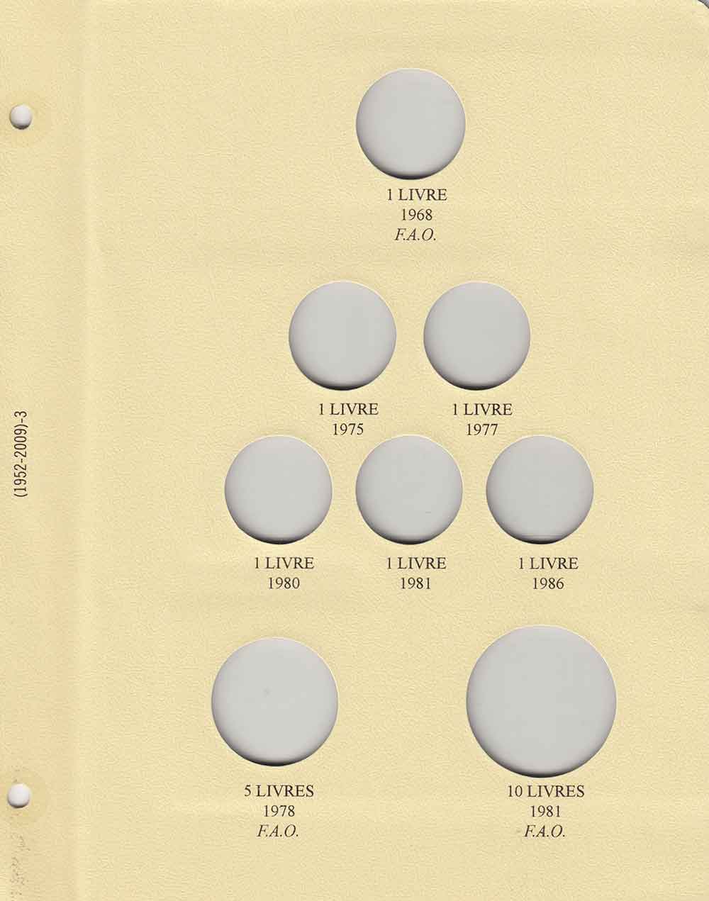 This album consists of 5 pages and contains a total of 65 slots. These slots are designed to house coins issued by Lebanon between 1952 and 2009, with the correct diameters and dates for all known varieties.
