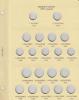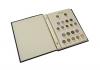 This attractive album as a deep brown colored binder with bright metallic gold imprint on the cover and the spine. The interior of the album is tan colored with black printing on both the pages and the inside covers. The pages feature clear acetate slides that cover and protect both sides of the coins while still allowing them to be viewed. The inside back cover has mintage information for the coins included in the album.