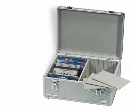 Convenient and safe storage for US Mint Sets and Proof Sets as well as for the most common annual sets of the international mints in their original packaging. Also suitable for postcards, postcard sheets, C6 approval cards and all types of CD cases. The adjustable partitions provide space for different sizes up to 6 1/4 inches (155mm) in height and 14 3/4 inches (370mm) in with.