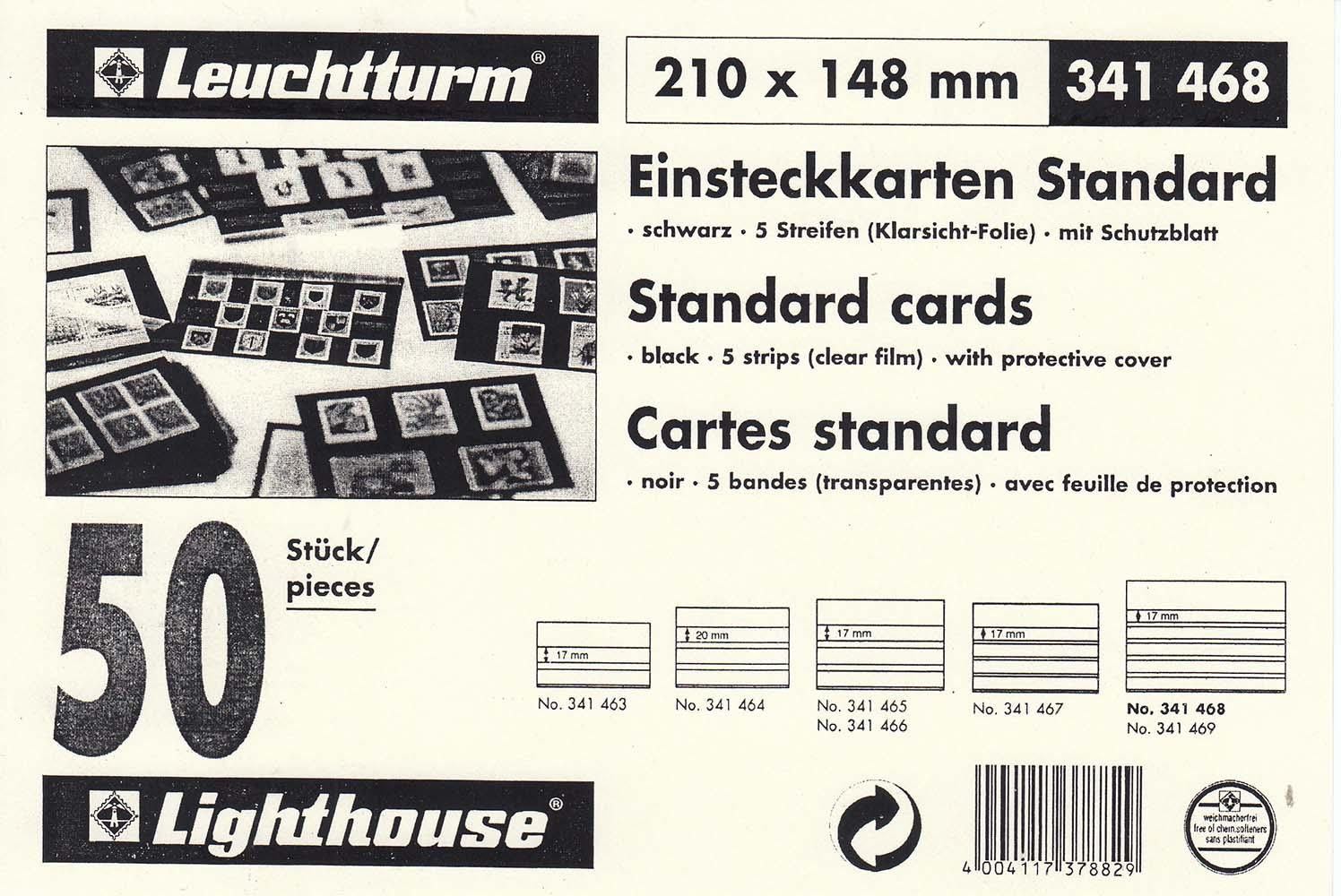 Sturdy black cardboard cards with 5 strips with a crystal clear over flap. Pack of 50 cards.