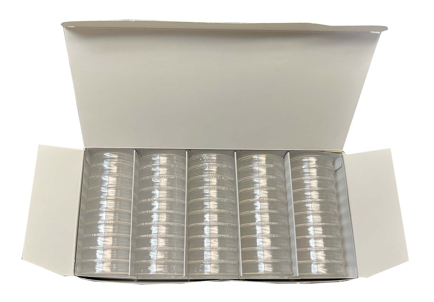 Lighthouse Magic Capsules are ideal for storing irregularly shaped, ancient, curved, or triangular coins, precious stones or other small items up to 7mm thick and up to 35mm in diameter. The special membrane inside the capsule is transparent, flexible, and conforms to the collectible, giving it the appearance to 'float' so that it can be viewed from front and back while holding it securely in place. The capsule is made from premium clarity, scratch resistant polystyrene. Suitable for coins up to 1 3/8 inch (35 mm) in diameter and thicknesses up to 7mm. Available in packs of 6 or boxes of 50 capsules.