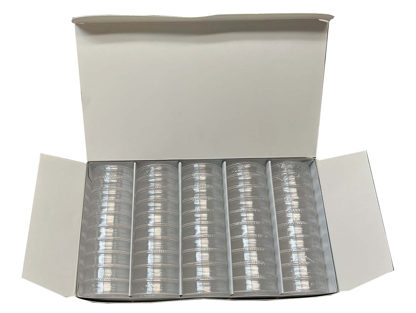 Lighthouse Magic Capsules are ideal for storing irregularly shaped, ancient, curved, or triangular coins, precious stones or other small items up to 7mm thick and up to 27mm in diameter. The special membrane inside the capsule is transparent, flexible, and conforms to the collectible, giving it the appearance to 'float' so that it can be viewed from front and back while holding it securely in place. The capsule is made from premium clarity, scratch resistant polystyrene. Suitable for coins up to 1 inch (27 mm) in diameter and thicknesses up to 7mm. Available in packs of 6 or boxes of 50 capsules.