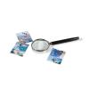 Elegant handheld magnifier with silver plated frame and black wooden handle. Quality glass lens with 3x magnification.