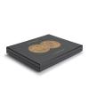 Elegant black presentation case for collecting 30 one-ounce Krugerrand gold coins. 1 tray featuring a black velour surface and 30 round cavities (1 1/2 inch (39mm) diameter) designed to fit Lighthouse Capsules -- 33mm (sold separately/not included). Gold-colored printing on lid and cushion with coin design. Lid cushion is upholstered in black satin. Secure and unobtrusive magnetic lock.