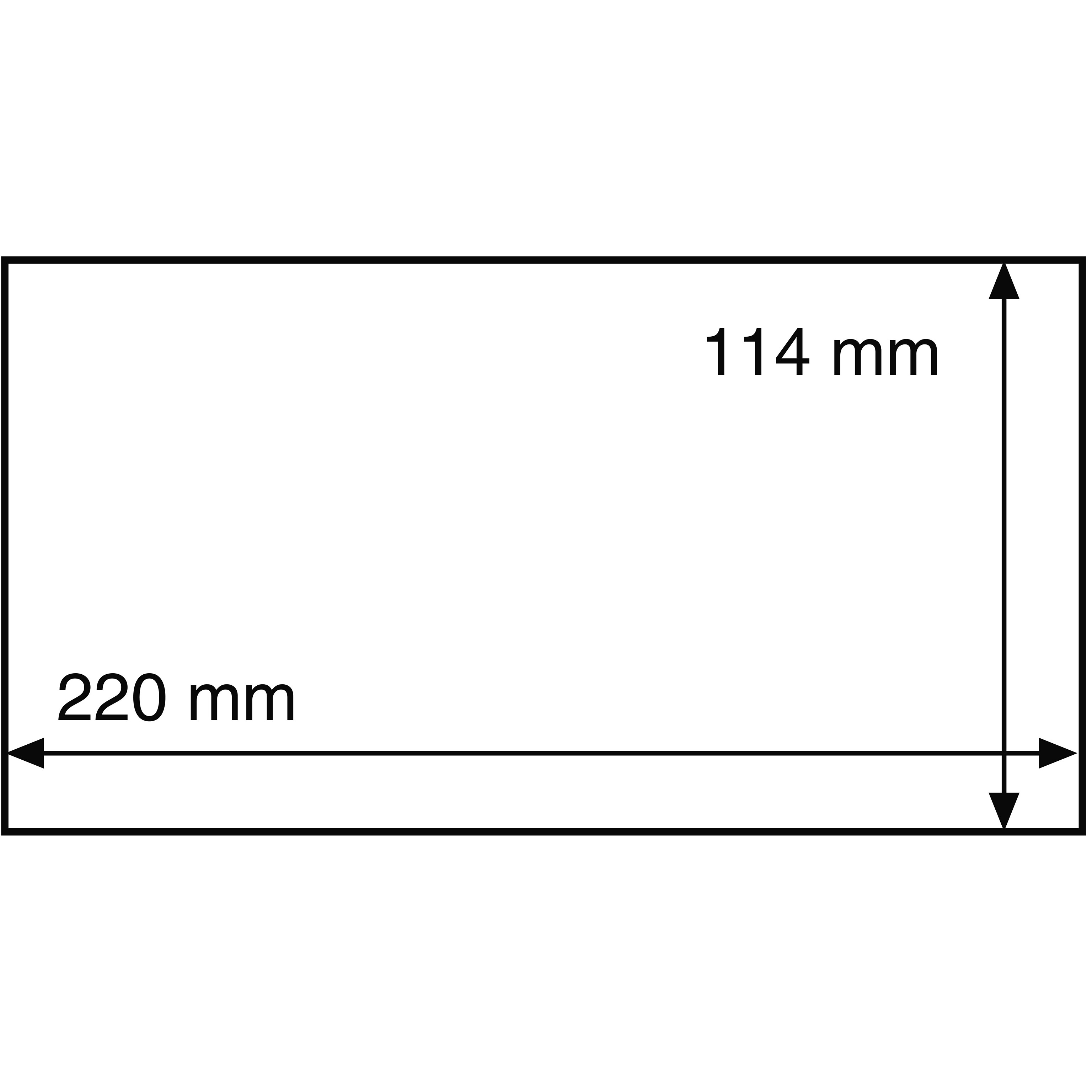 For #10 covers and envelopes up to 220x114 mm. Made from a special film free of chemical softeners. The sleeves are welded on three sides and open at the side. Pack of 50