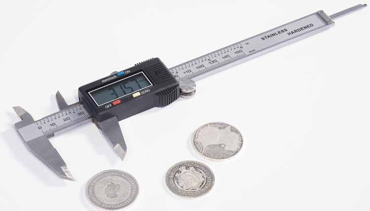 Stainless steel digital coin sizing gauge, switchable from inches to millimeters, LCD display, complete with batteries, a must-have for the serious coin collector. Measuring range: 0-6 in (0-150 mm); Measuring unit: .01 mm; Accuracy: .03 mm; Zero reset button for differential measurements; Complete with batteries, ready to use.