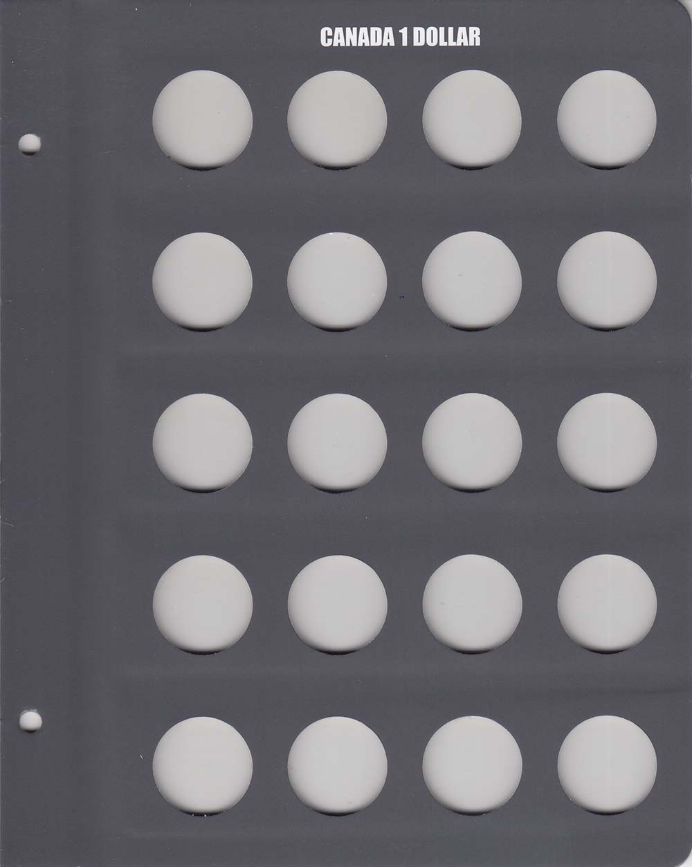This update page is designed to add additional capacity to Lighthouse Vista Book Canada Nickel $1 Album, 1968-Date. Each page has 20 ports and features the same dark gray background color as the stock pages in the album.
