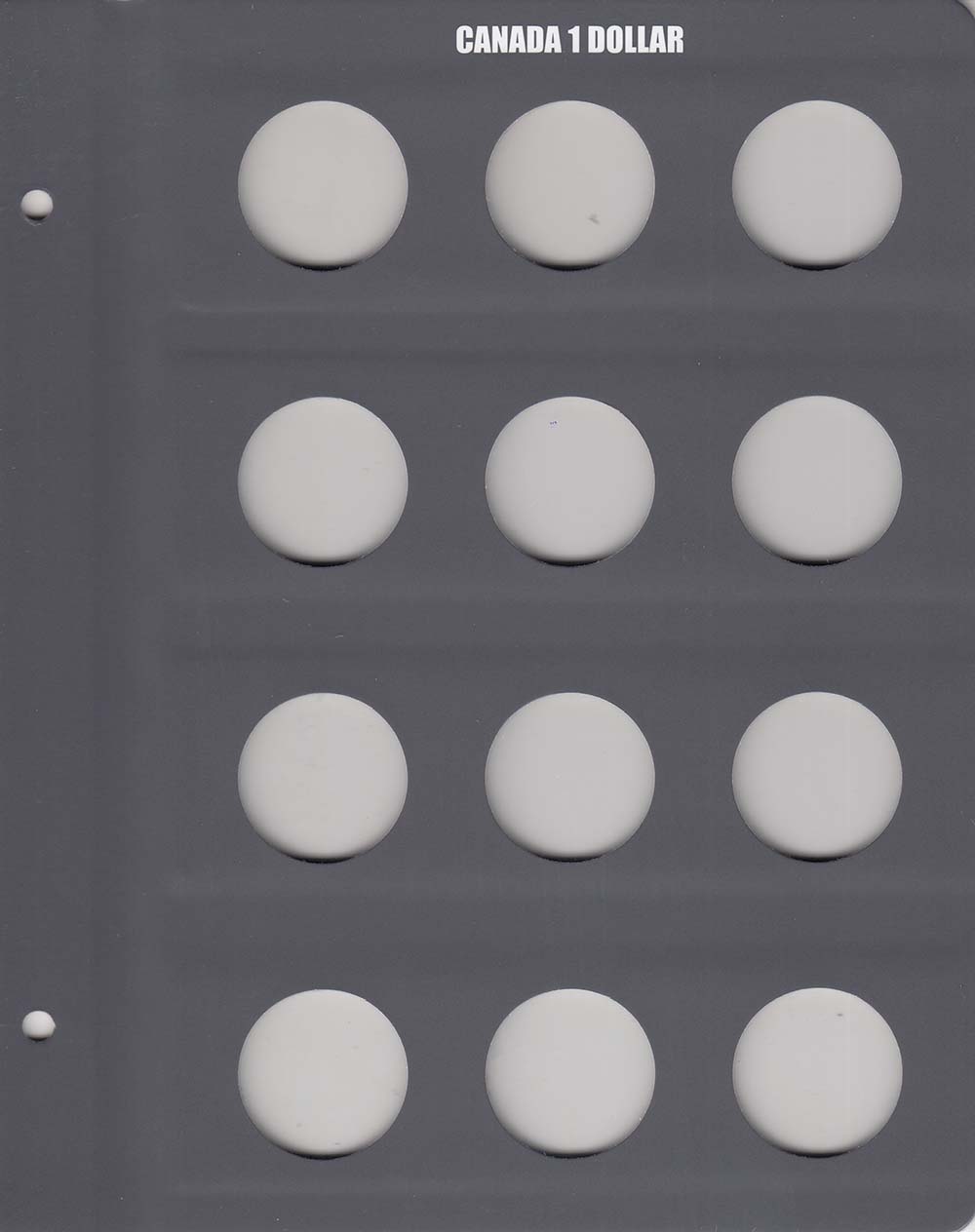 This update page is designed to add additional capacity to Lighthouse Vista Book Canada Nickel $1 Album, 1968-Date. Each page has 12 ports and features the same dark gray background color as the stock pages in the album.