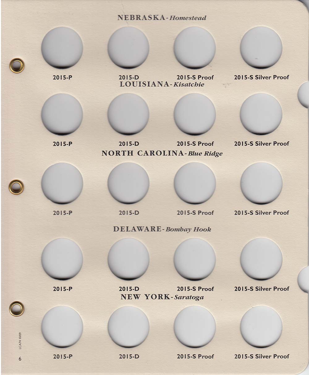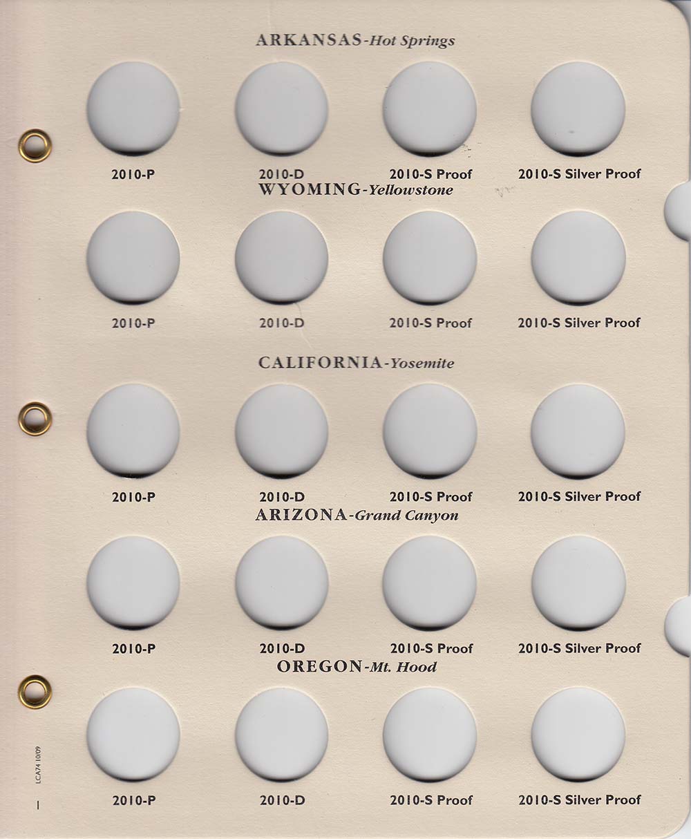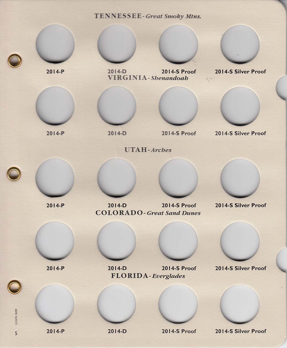 This album includes spaces for all of the National Park Quarters from 2010 to 2015, include P-mint, D-mint, S-mint clad and S-mint silver. Littleton albums provide archival-quality, acid-free, and PVC-free long-term storage for your collection. Each album gives you a brief history about the series, along with mintage figures. Littleton albums feature sturdy 3-ring binder construction, so album pages lie flat and can be easily removed. Brass eyelets reinforce the pages, and thumb-holds make slide removal convenient. Crystal-clear slides show both obverse and reverse. Album fits in a 2-inch slipcase (sold separately).