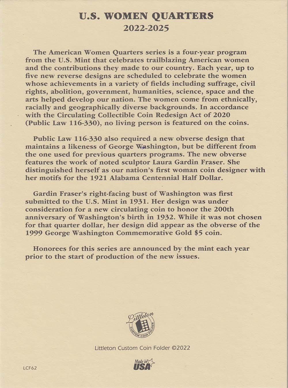 Littleton Folder LCF62: American Women Quarters - Date Set - 2022-2025