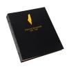 This attractive album as a deep brown colored binder with bright metallic gold imprint on the cover and the spine. The interior of the album is tan colored with black printing on both the pages and the inside covers. The pages feature clear acetate slides that cover and protect both sides of the coins while still allowing them to be viewed. The inside back cover has mintage information for the coins included in the album.