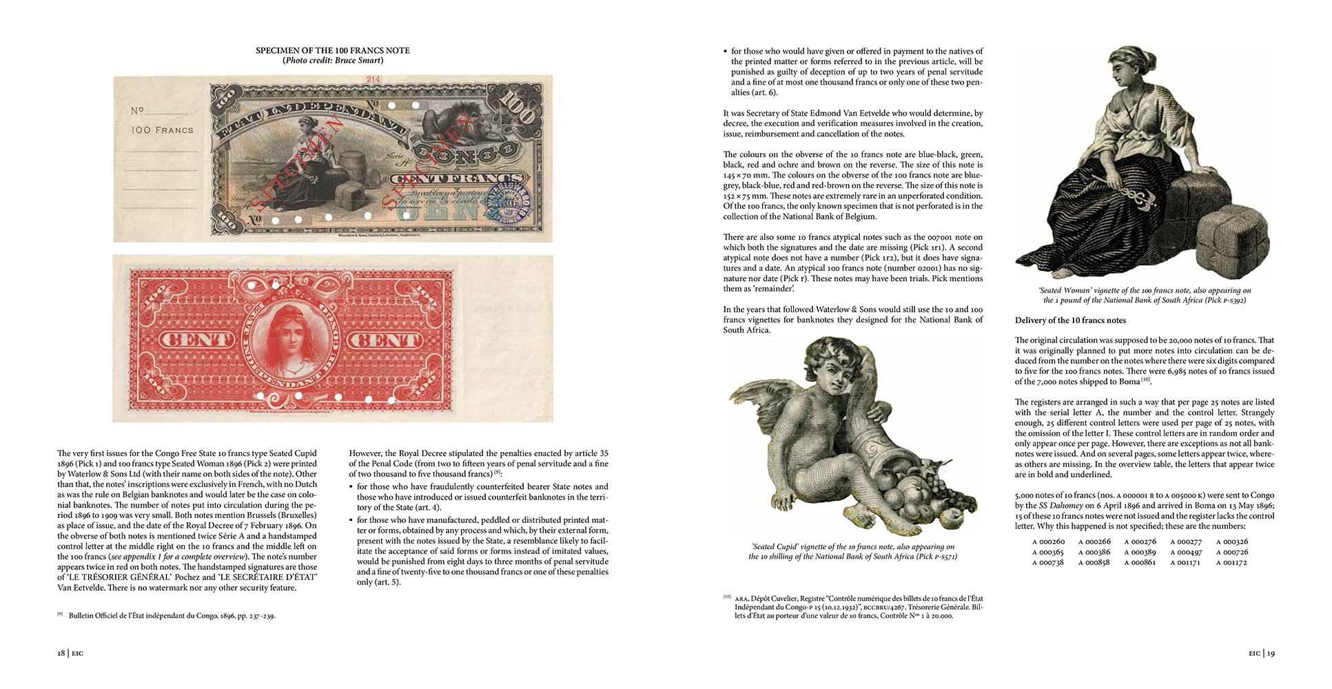 This book describes the history of all the treasury notes issued by the Congo Free State in 1896 and all the banknotes issued by the Bank of Belgian Congo from 1912 to 1952 and by the Bank of Belgian Congo and Ruanda-Urundi until Congo’s independence in 1960.