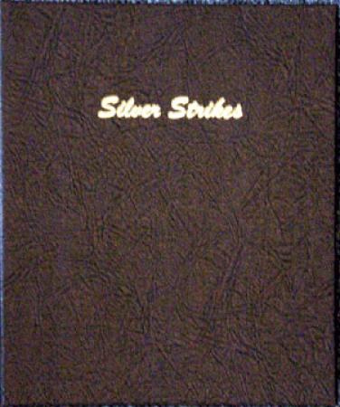 This Dansco Supreme Album for Silver Strikes, Plain (Dansco model number 7003) consists of a brown leatherette binder with loose-leaf hinged pages. The binder is gold stamped and the plastic coated pages are tan in color with black lettering. The pages are held in the binder with two posts that screw apart so that pages can be added, removed and replaced with ease. Each of the five pages contains nine ports per page for a total of 45 ports. If a slip case is desired, the 7/8 inch slip case is the proper size for this album.