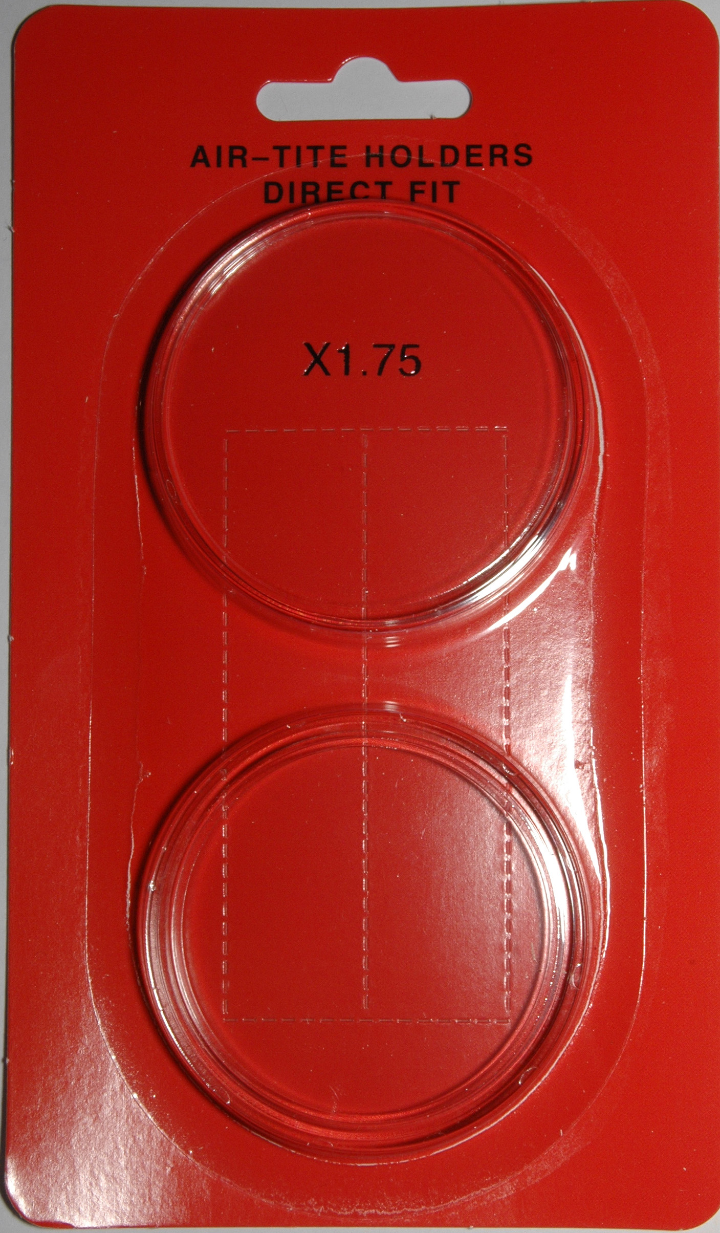 Direct fit Air-Tite holders are designed to fit the most popular coin sizes without the need of rings. The X1.75 size is designed for 1.75-inch medallions.