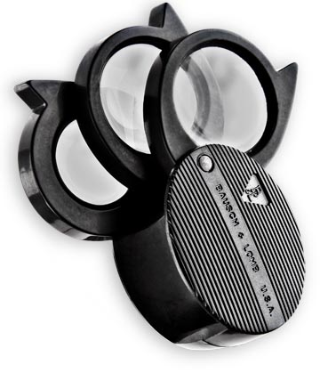 5x to 20x magnification accomplished with three lenses in a handy folding pocket magnifer. Swing-away casing provides protection and serves as a handle.