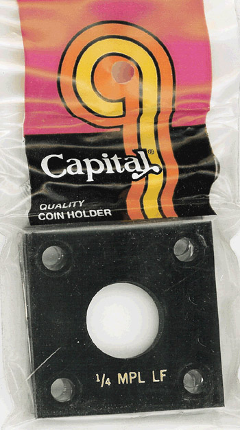 Capital Plastics offers the largest selection of premium coin holders of any available brand. These 2x2 sized holders come in either black or white finish and have gold printing. The 2x2 style holder is three layers of plastic held together with screws.