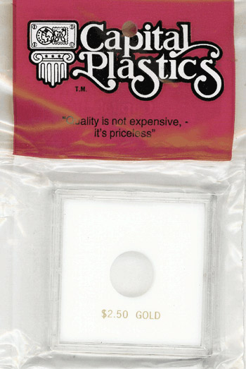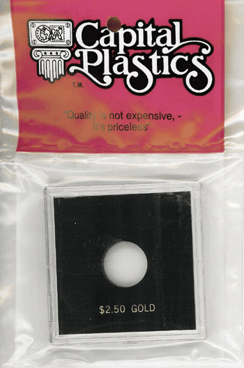 Capital Plastics offers the largest selection of premium coin holders of any available brand. The 2.5x2.5 style holder is made of clear molded plastic pieces that snap together around a black or white core with gold printing.