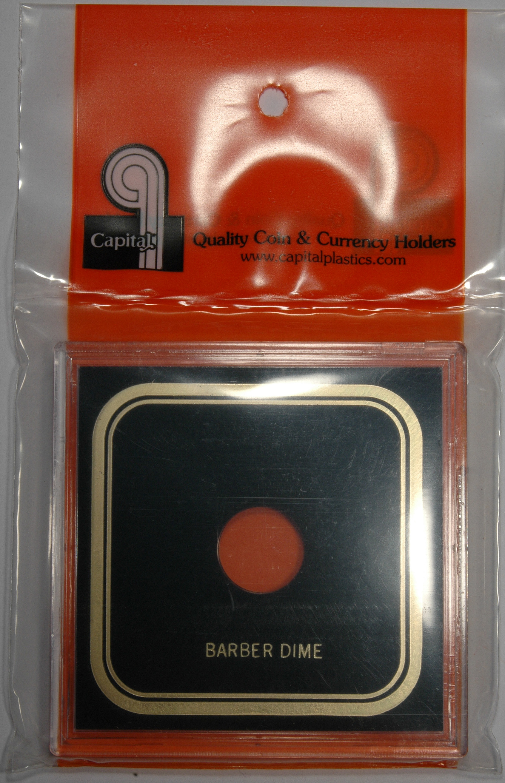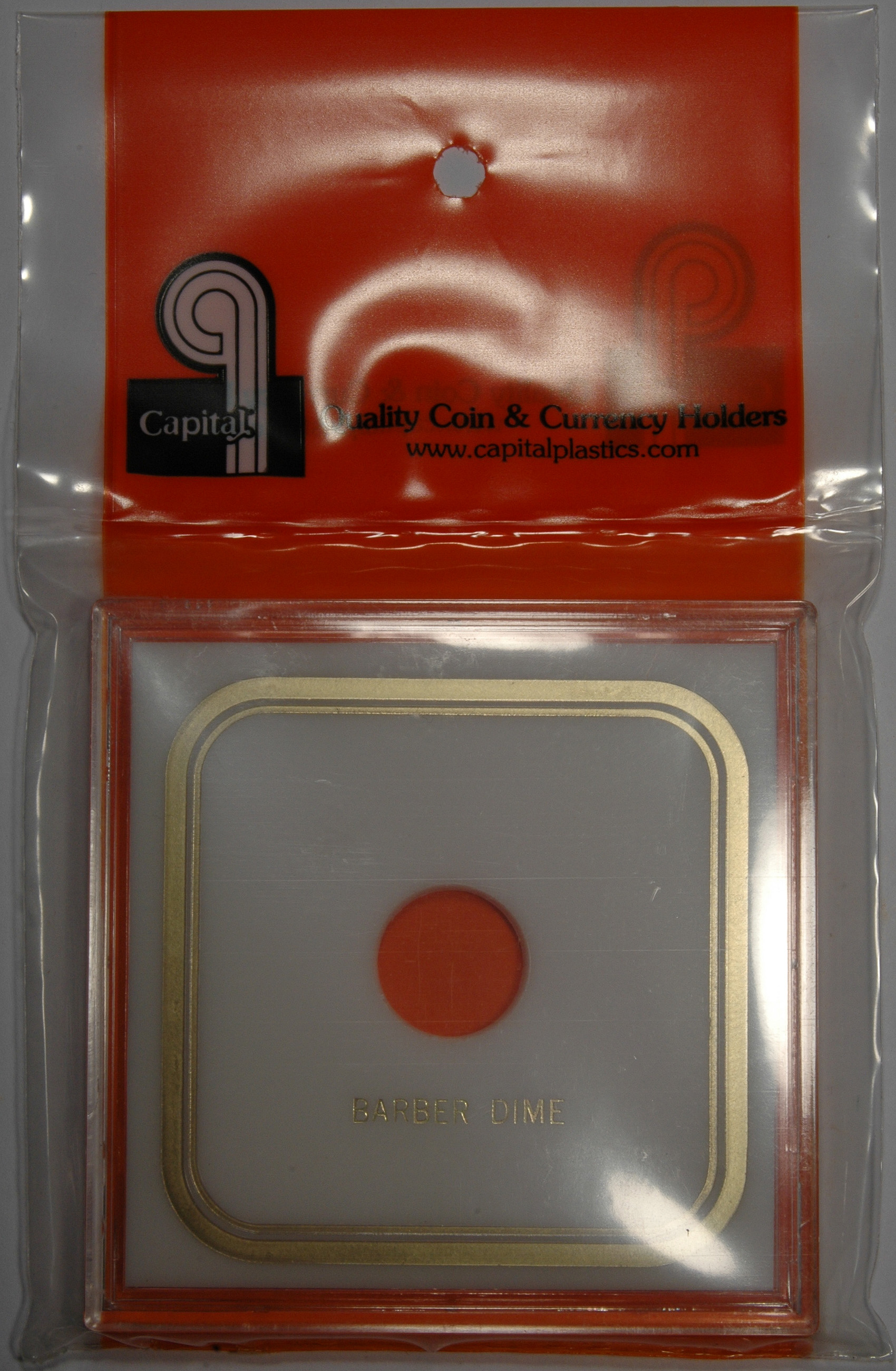 Capital Plastics offers the largest selection of premium coin holders of any available brand. The 3.3x3.3 style holder is vest pocket sized and made of clear molded plastic pieces that snap together around a black or white core with gold printing. It has a double gold border around the edge.