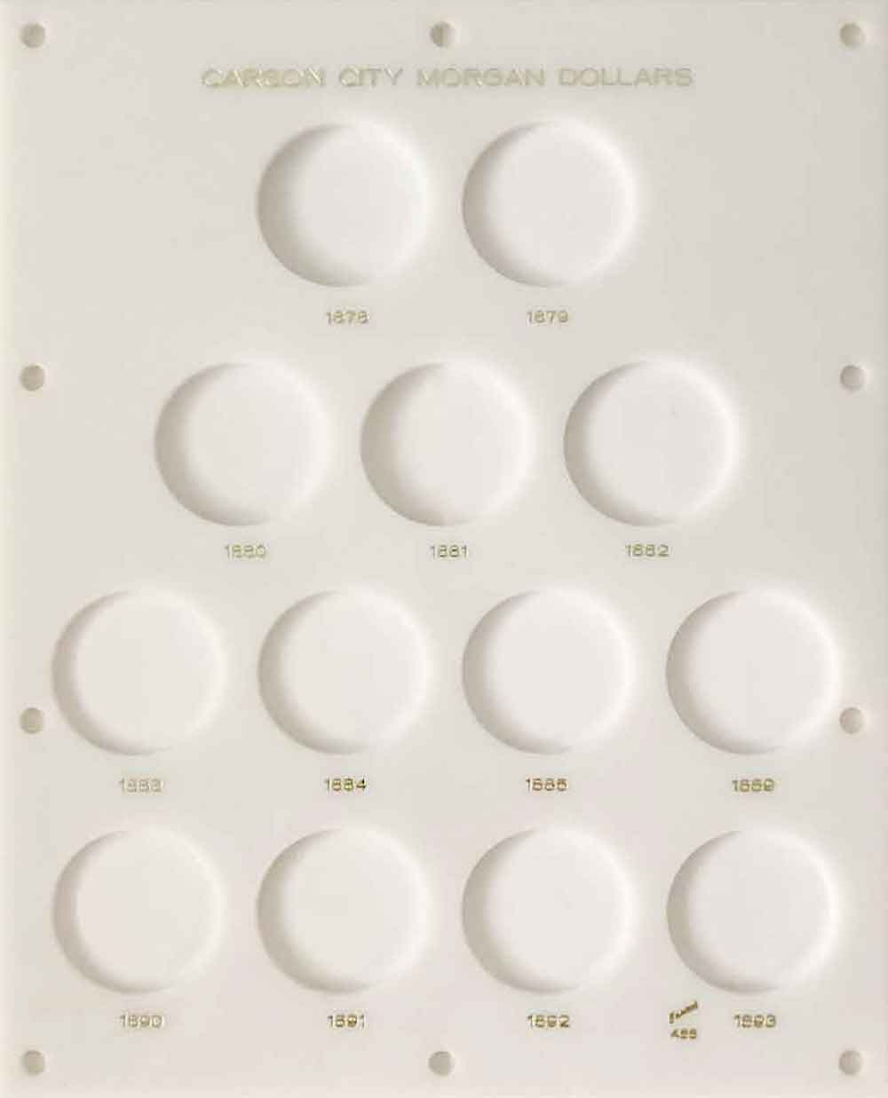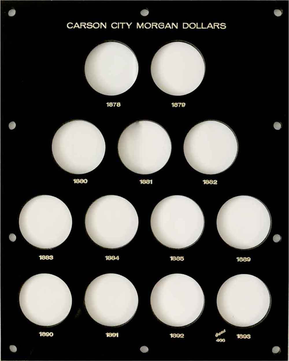 Capital Plastics offers the largest selection of premium coin holders of any available brand. This holder has 13 holes for an example of each of the CC-mint Morgan Dollars.