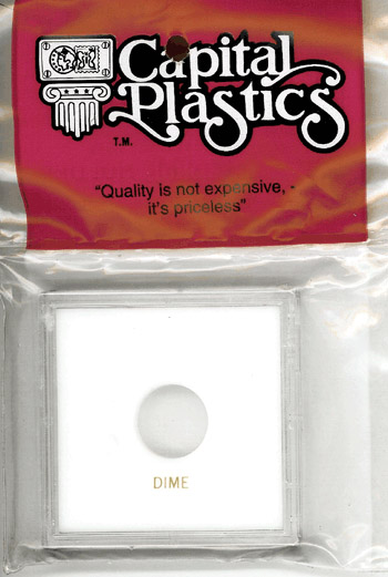 Capital Plastics offers the largest selection of premium coin holders of any available brand. The 2.5x2.5 style holder is made of clear molded plastic pieces that snap together around a black or white core with gold printing.