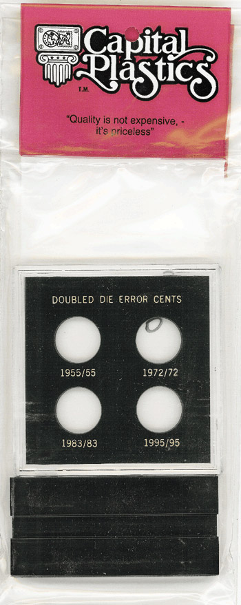 Capital Plastics offers the largest selection of premium coin holders of any available brand. This is Capital's Vest Pocket Case snap together holder with 4 holes for the four better known double die Lincoln Cents (1955, 1972, 1983 and 1995).
