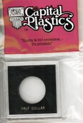 Capital Plastics offers the largest selection of premium coin holders of any available brand. The 2.5x2.5 style holder is made of clear molded plastic pieces that snap together around a black or white core with gold printing.
