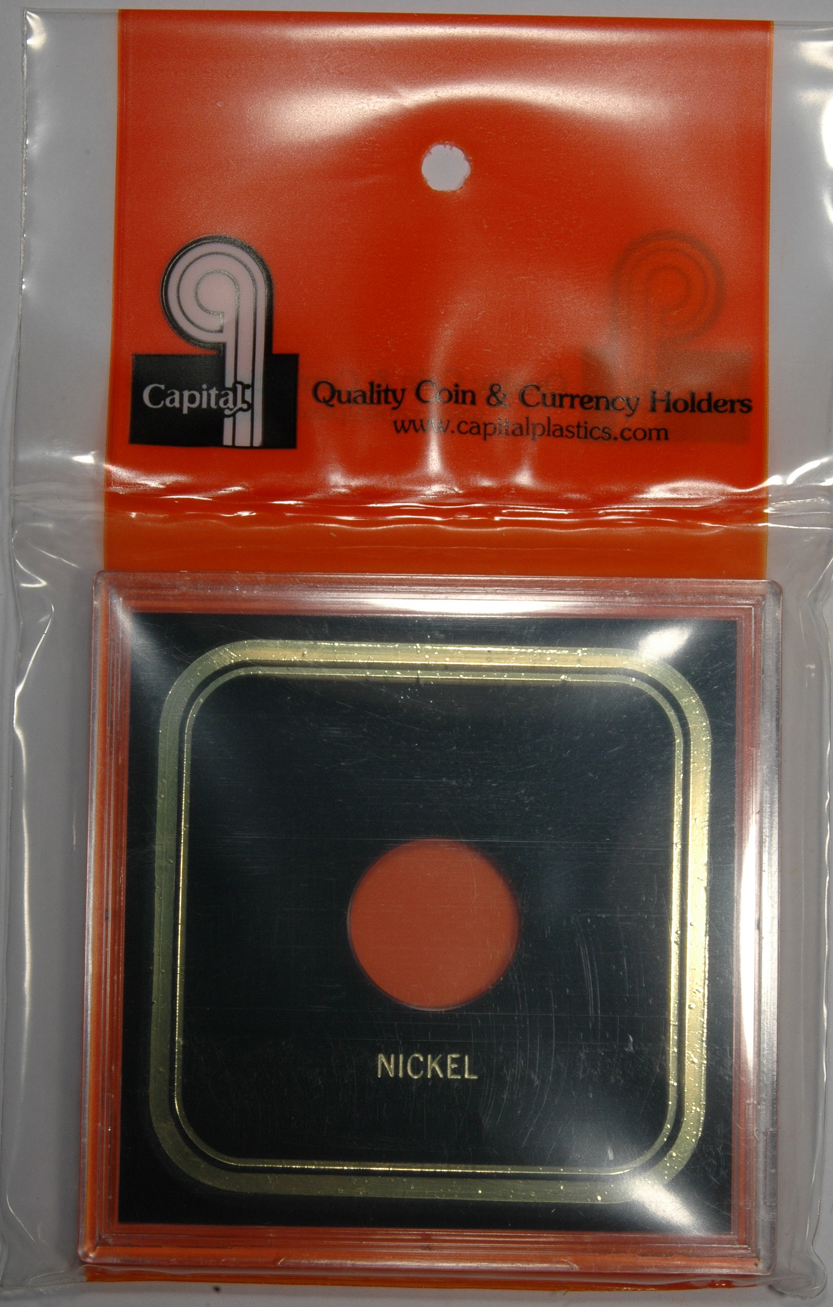 Capital Plastics offers the largest selection of premium coin holders of any available brand. The 3.3x3.3 style holder is vest pocket sized and made of clear molded plastic pieces that snap together around a black or white core with gold printing. It has a double gold border around the edge.