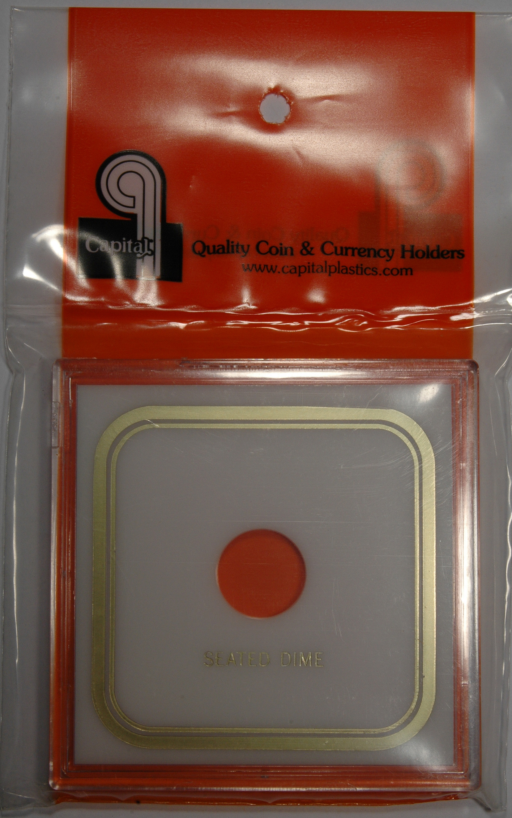 Capital Plastics offers the largest selection of premium coin holders of any available brand. The 3.3x3.3 style holder is vest pocket sized and made of clear molded plastic pieces that snap together around a black or white core with gold printing. It has a double gold border around the edge.