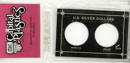 Capital Plastics offers the largest selection of premium coin holders of any available brand. This holder has two holes, one for a Morgan Dollar and one for a Peace Dollar.