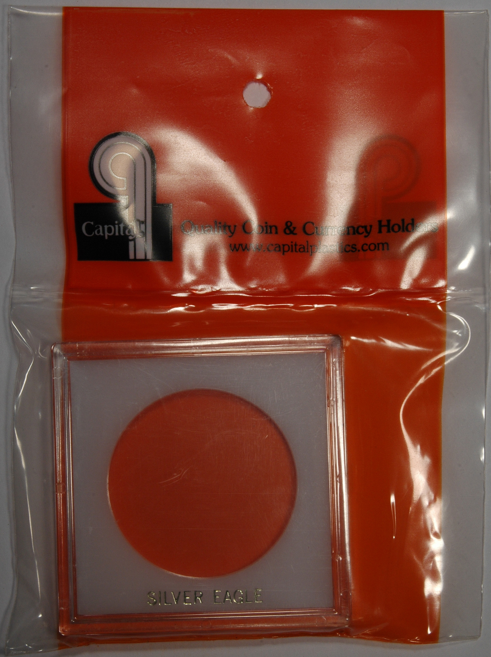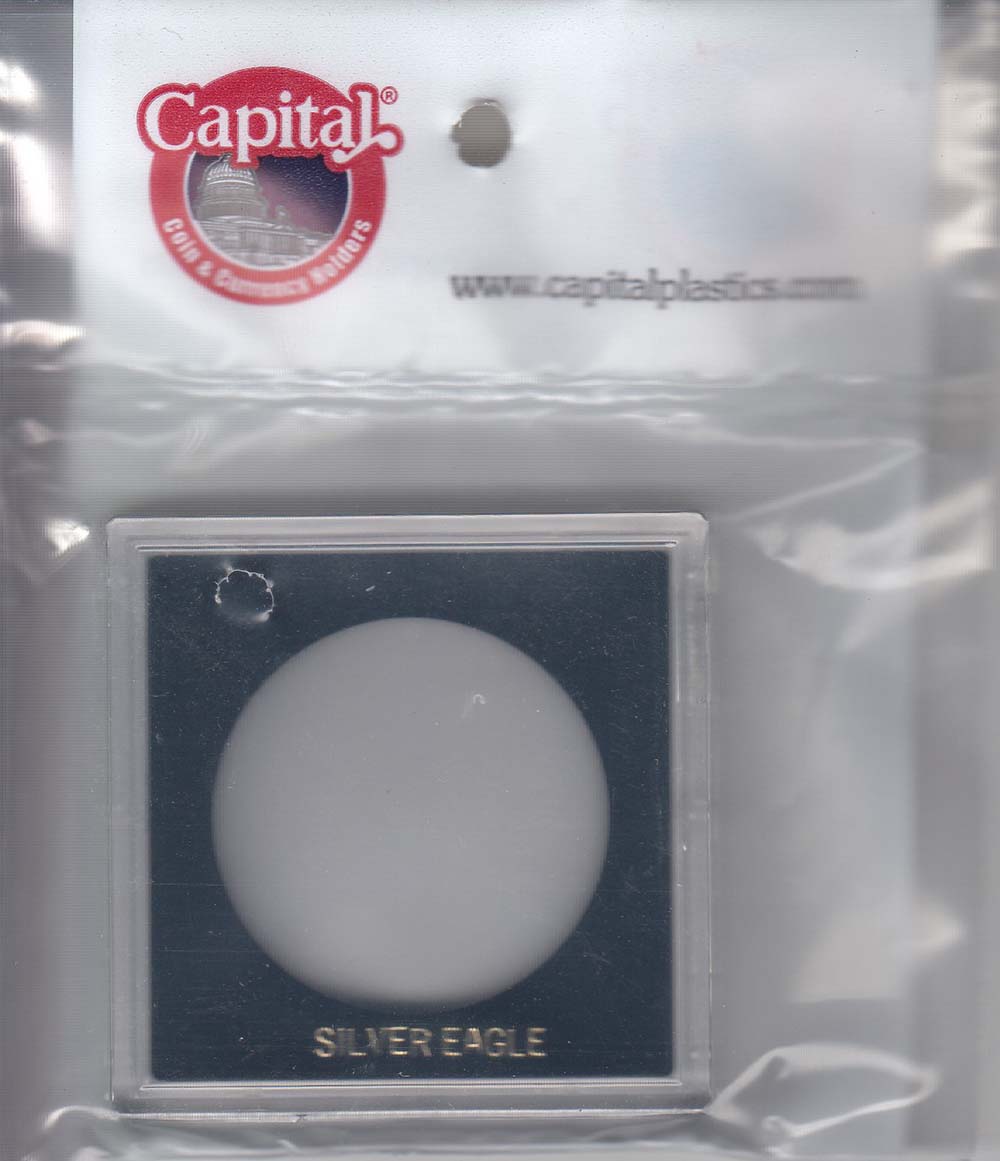 Capital Plastics offers the largest selection of premium coin holders of any available brand. The 2.5x2.5 style holder is made of clear molded plastic pieces that snap together around a black or white core with gold printing.