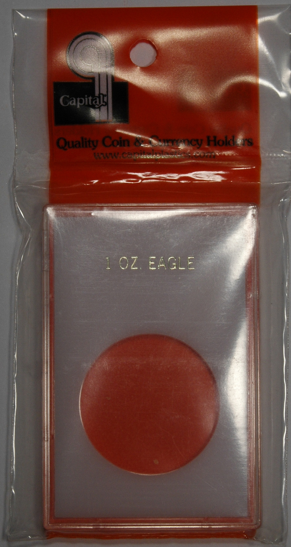 Capital Plastics offers the largest selection of premium coin holders of any available brand. The 2x3 style holder is made of clear molded plastic pieces that snap together around a black or white core with gold printing. It is sized similar to a slab and includes space at the top for a label.