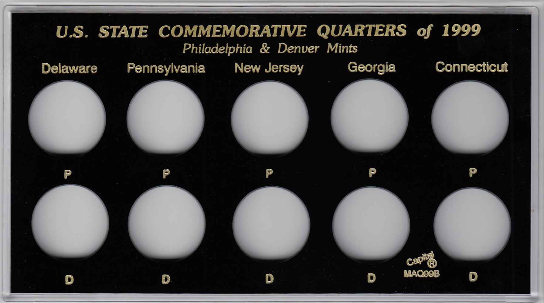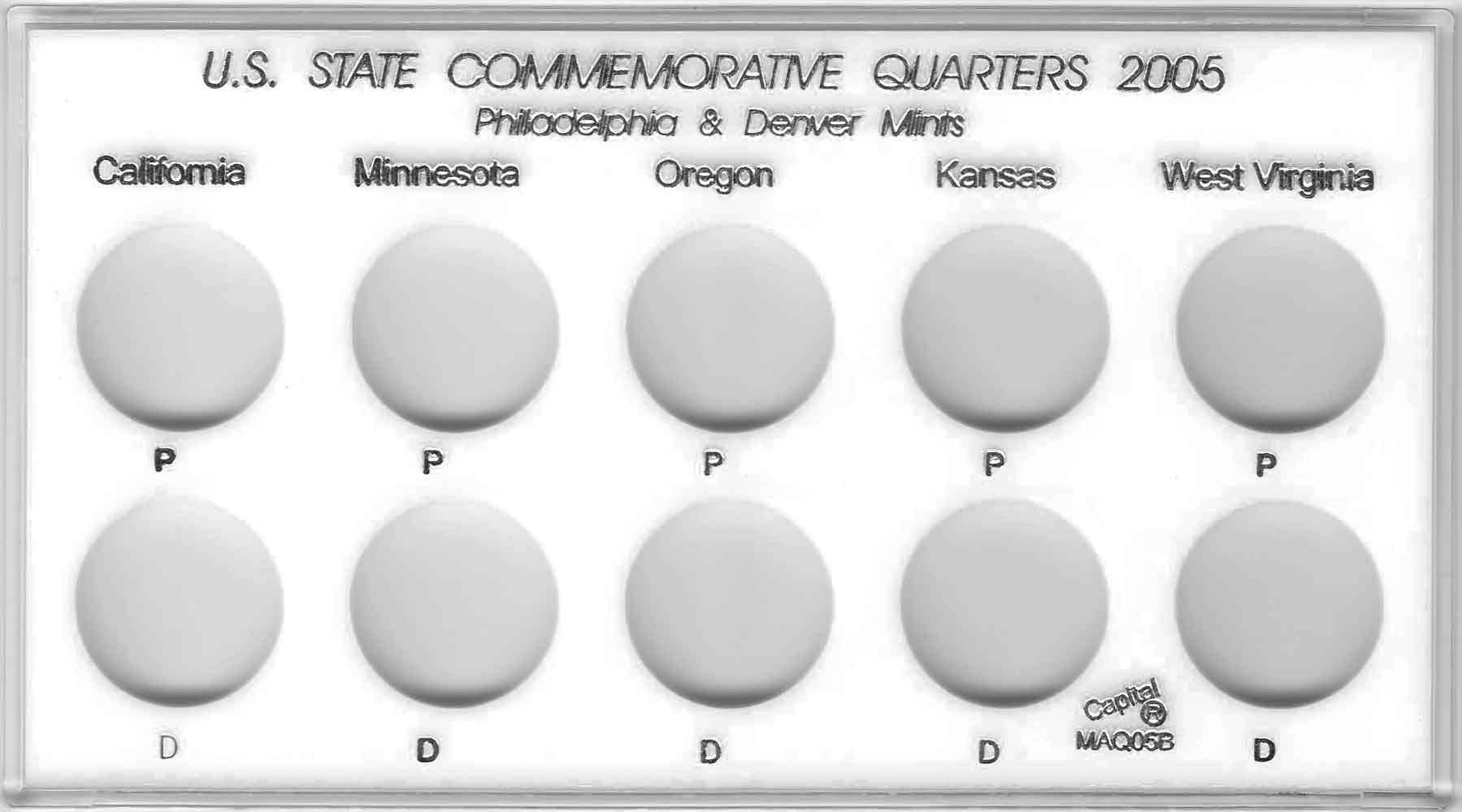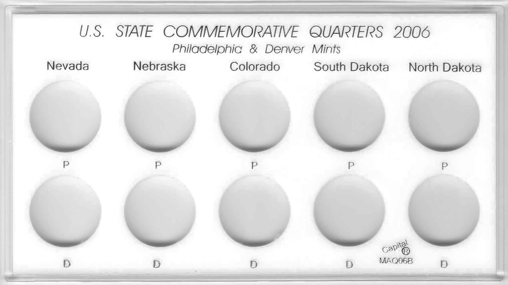 Capital Plastics offers the largest selection of premium coin holders of any available brand. This is Capital's Meteor style snap together holder with 10 holes for a P and D year set of State Quarters (5 Philadelphia mint coins and 5 Denver mint coins).