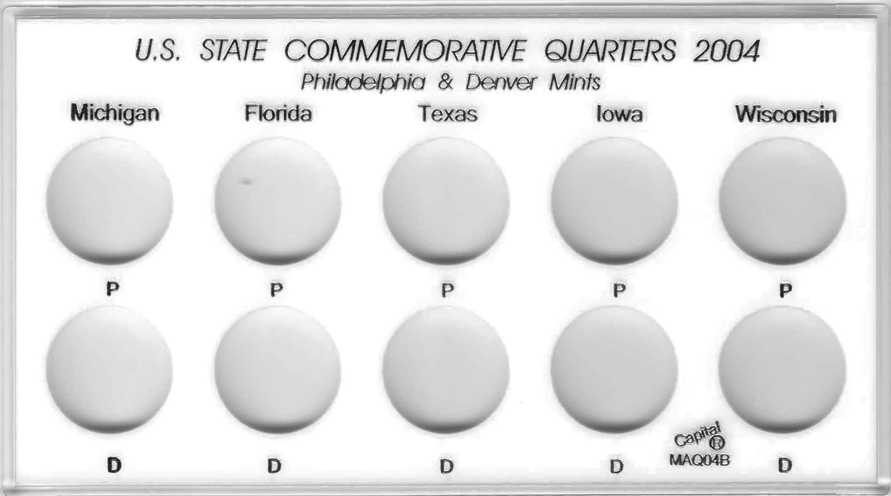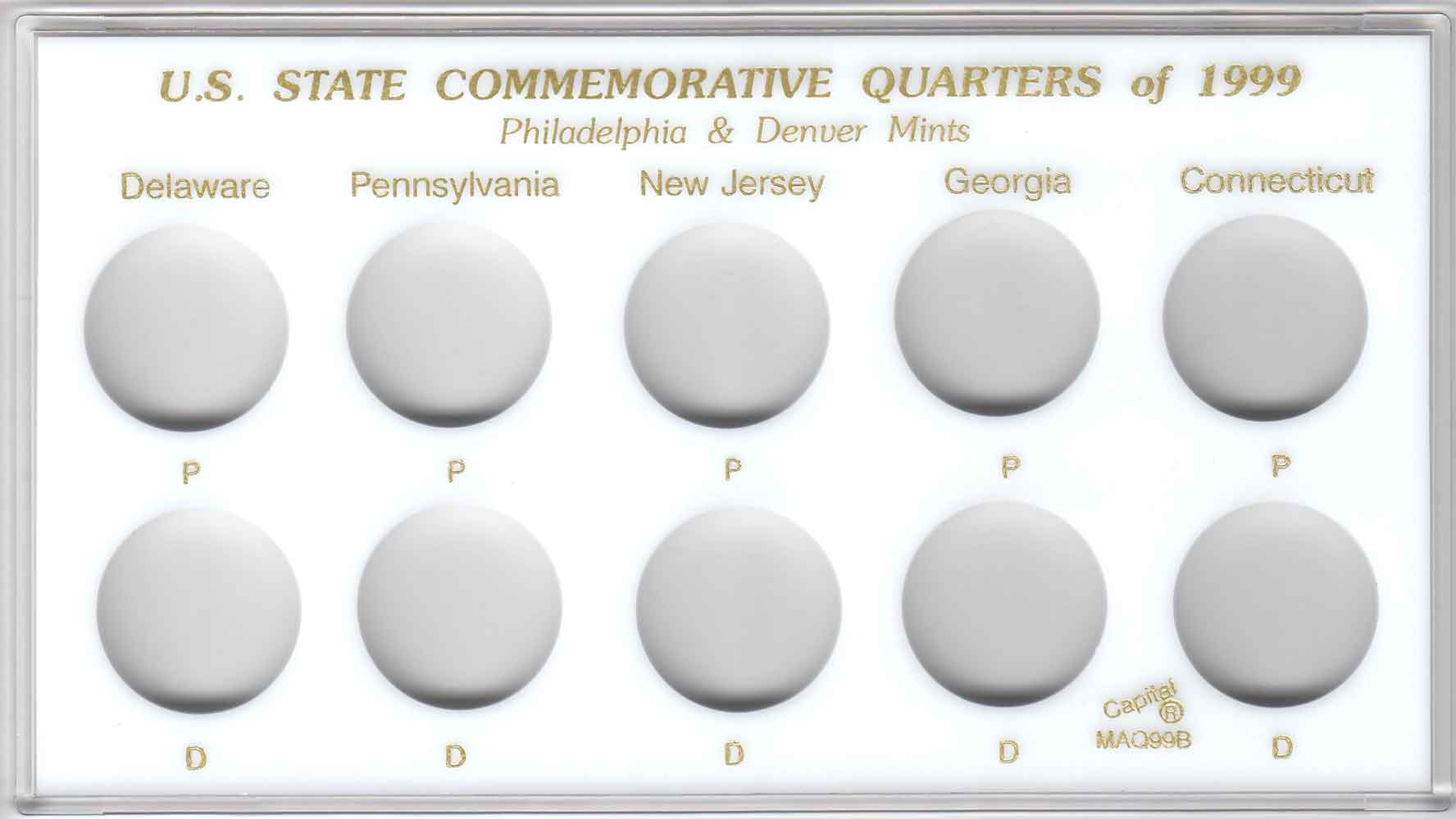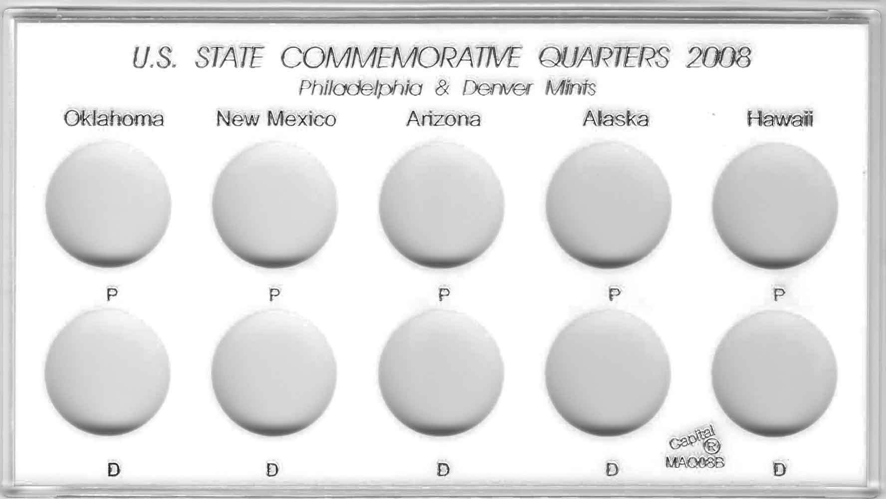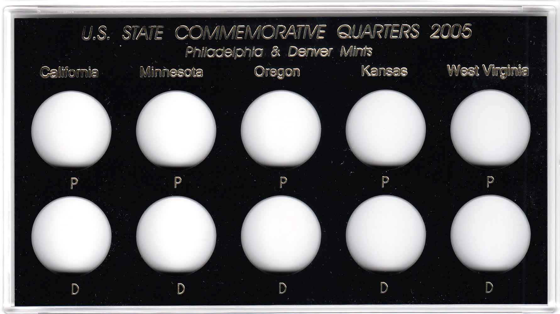 Capital Plastics offers the largest selection of premium coin holders of any available brand. This is Capital's Meteor style snap together holder with 10 holes for a P and D year set of State Quarters (5 Philadelphia mint coins and 5 Denver mint coins).