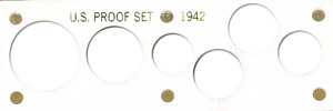 Capital Plastics offers the largest selection of premium coin holders of any available brand. This holder has six holes for a 1942 proof set (cent through half with two nickel holes).