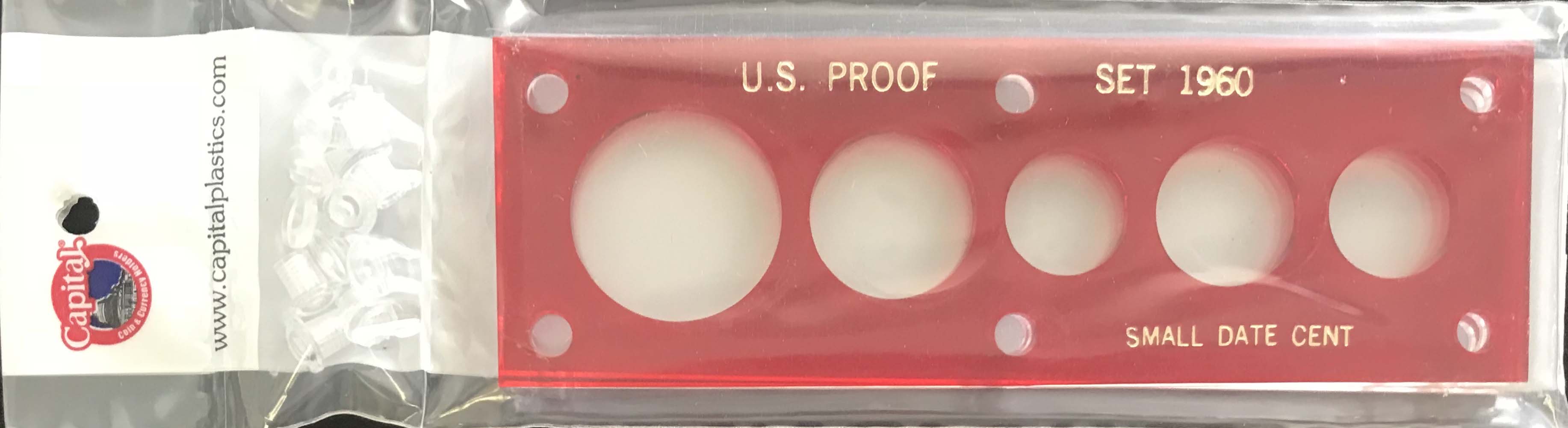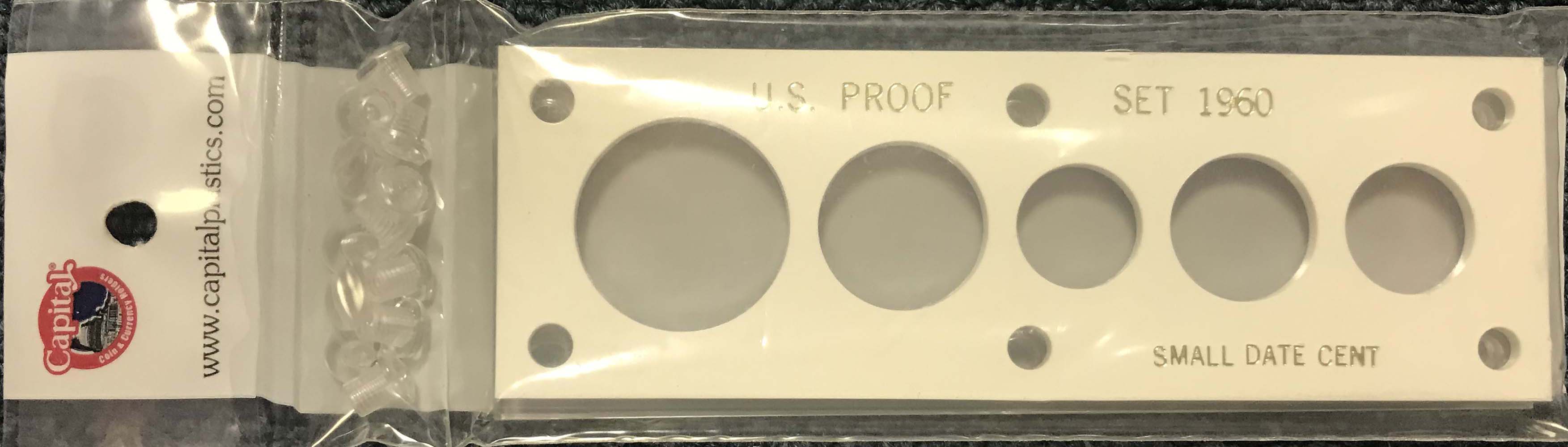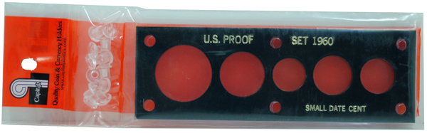 Capital Plastics offers the largest selection of premium coin holders of any available brand. This holder has five holes for a 1960 small date proof set (small date cent through half).