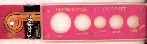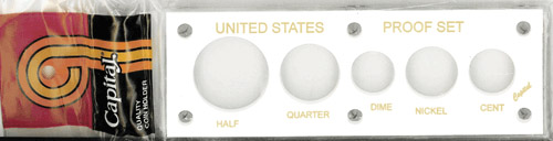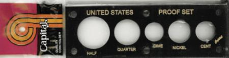 Capital Plastics offers the largest selection of premium coin holders of any available brand. This holder has five holes for a proof set (cent through half only).