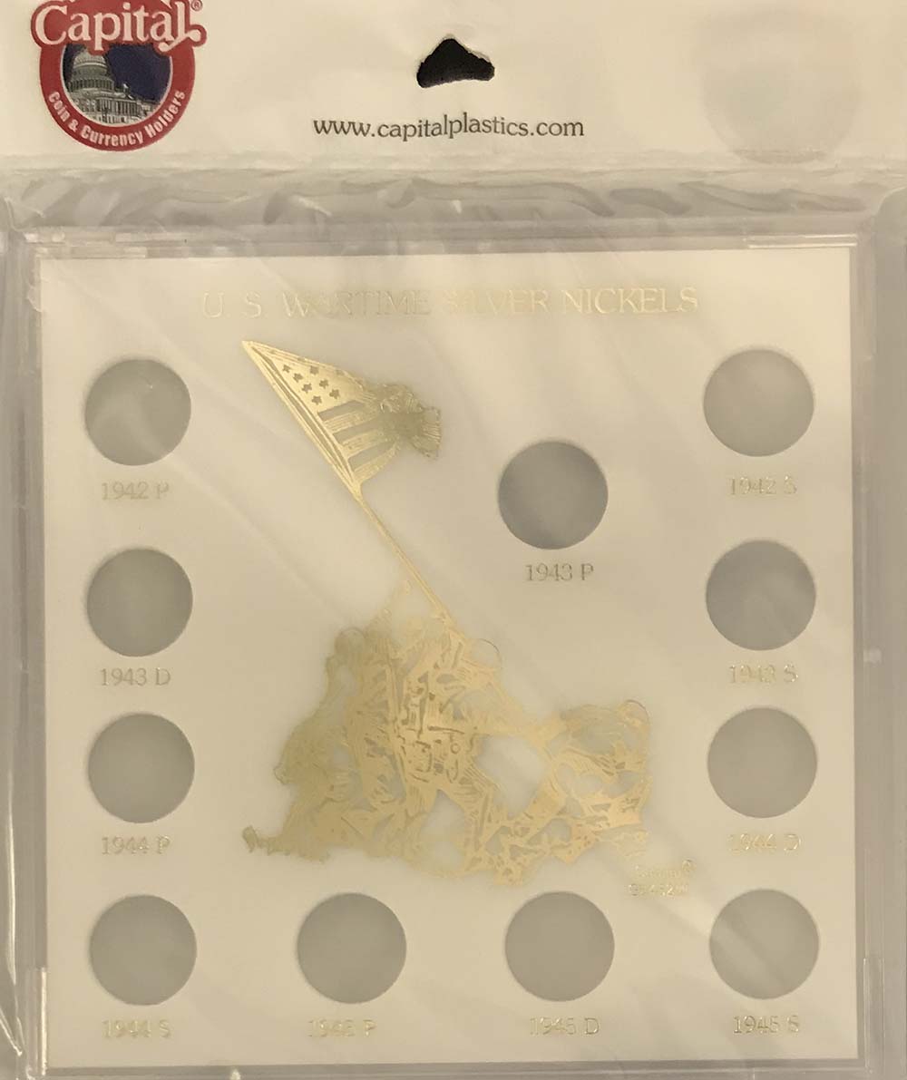 Capital Plastics offers the largest selection of premium coin holders of any available brand. This is Capital's Galaxy style snap together holder with 11 holes for silver war time Jefferson Nickels.