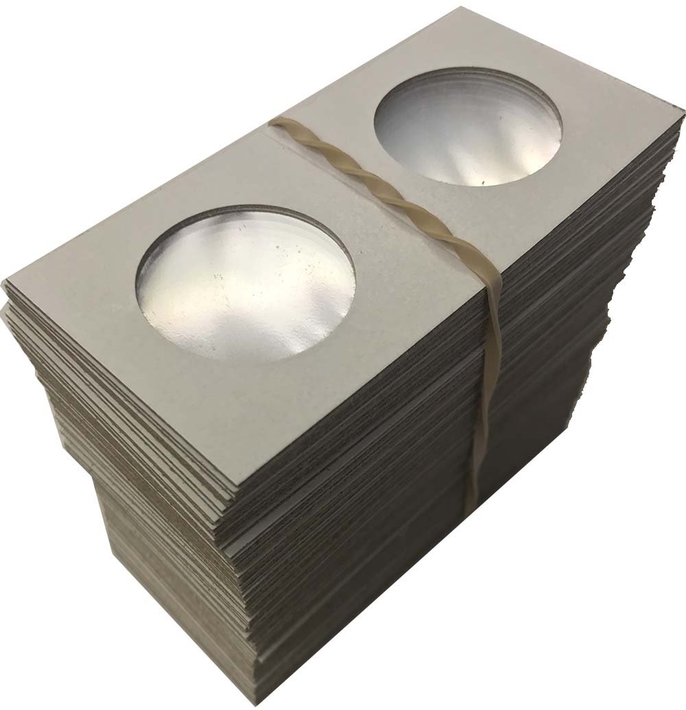 Cardboard 2x2 flips are the most widely used coin holders in the industry. Just insert a coin, fold over and staple. Cowen's brand holders--made with heavier (thicker) cardboard-- provide more protection for your coins than the other brands of 2x2 cardboard coin holders available on the market. The inside of Cowen's holders are lined with DuPont Mylar, the chemically most non-reactive lining available for coins. Mylar does not tear or scratch and is also the most moisture resistant film available. Mylar film is also dustproof with the lowest available permeability. Sold in bundles of 100 or cases of 3000 (30 bundles).