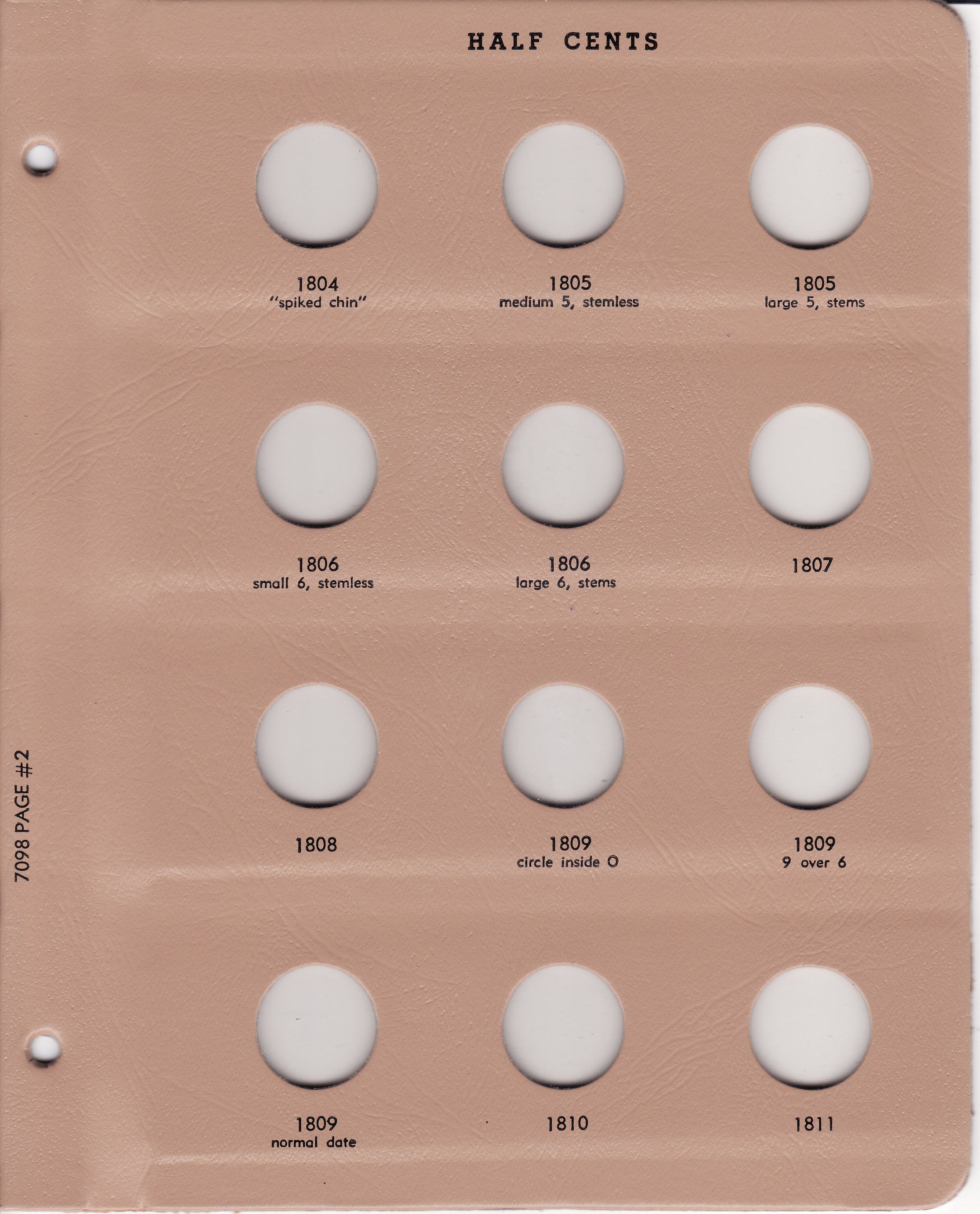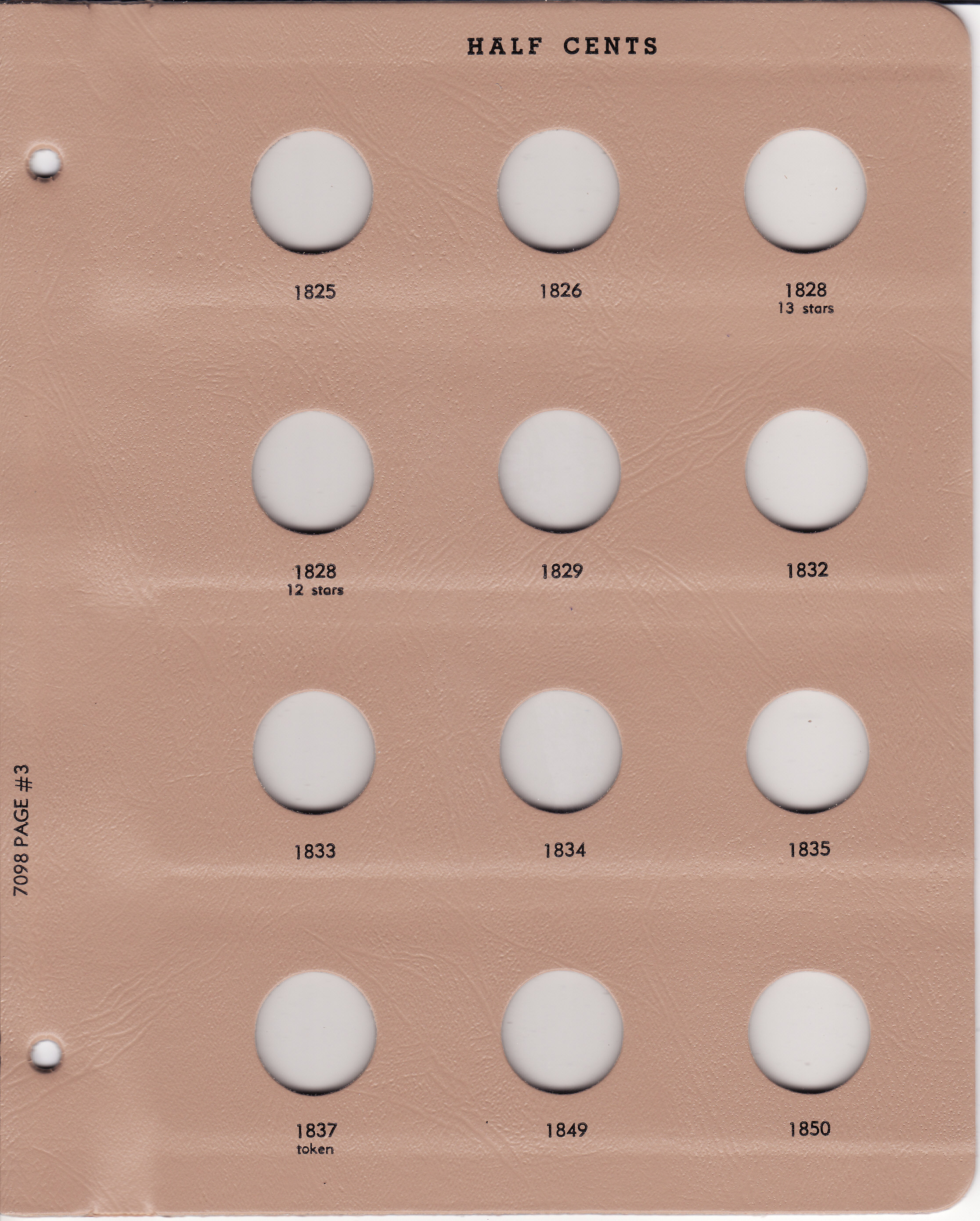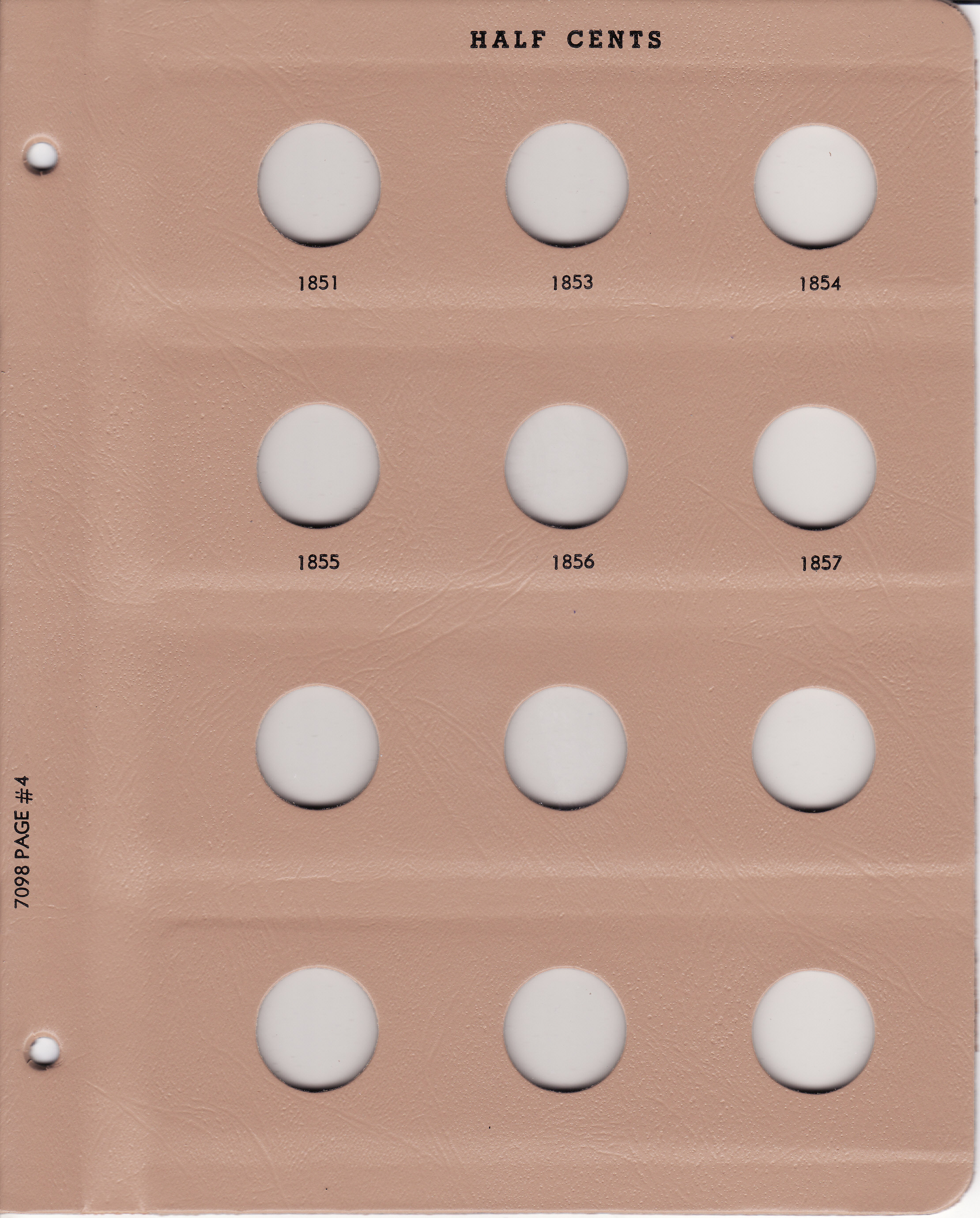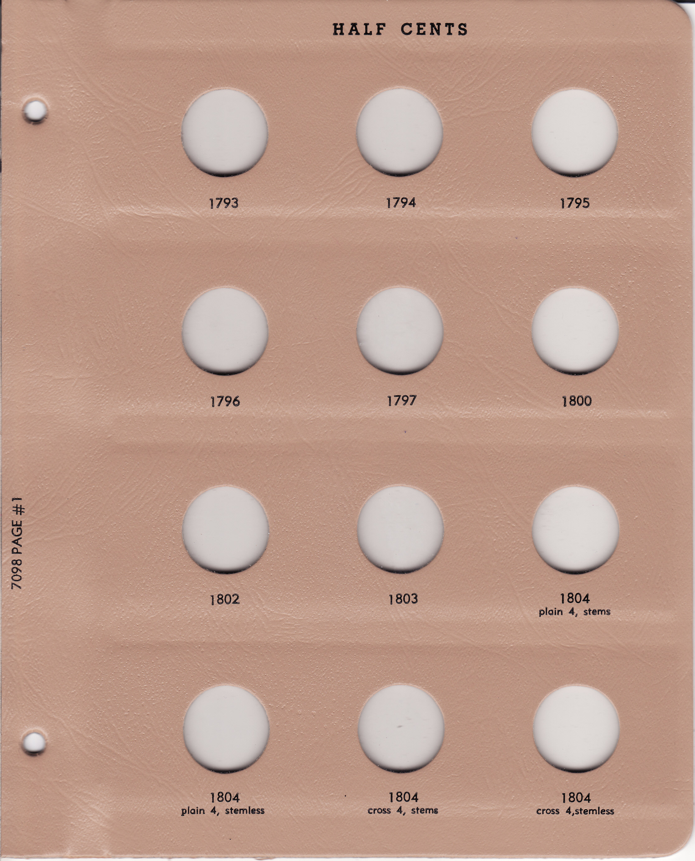 This Dansco Supreme Album for Half Cents 1793-1857 (Dansco model number 7098) consists of a brown leatherette binder with loose-leaf hinged pages. The inside front and back covers feature a historical summary of the Modern Commemorative Coin program. See provided images for detailed page-by-page contents for this album. Dansco Supreme Albums are the best-selling line of coin albums due to their high-quality, complete line for virtually all US coins and the flexibility to accommodate almost any collection: