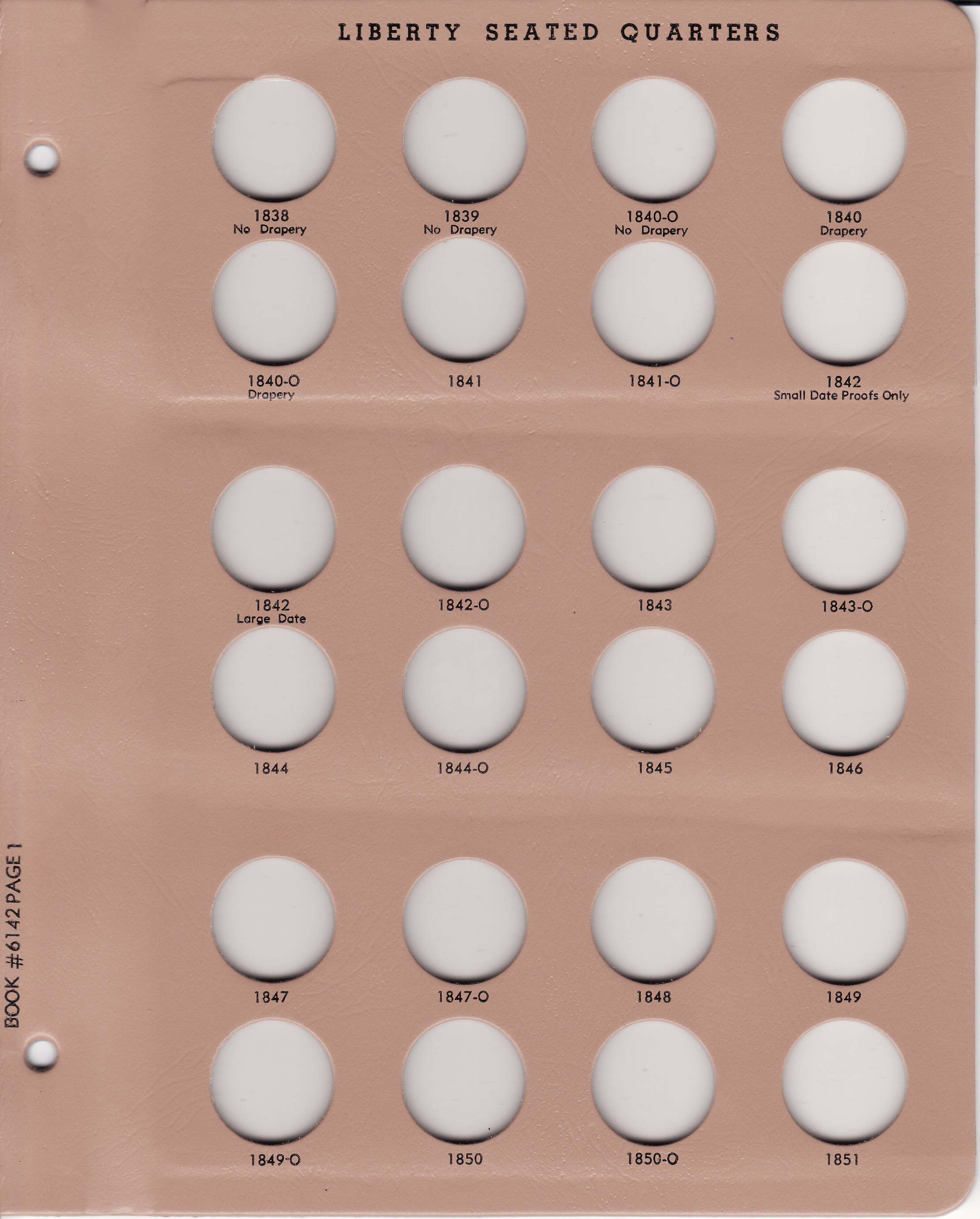Dansco Album 6142: Liberty Seated Quarters, 1838-1891